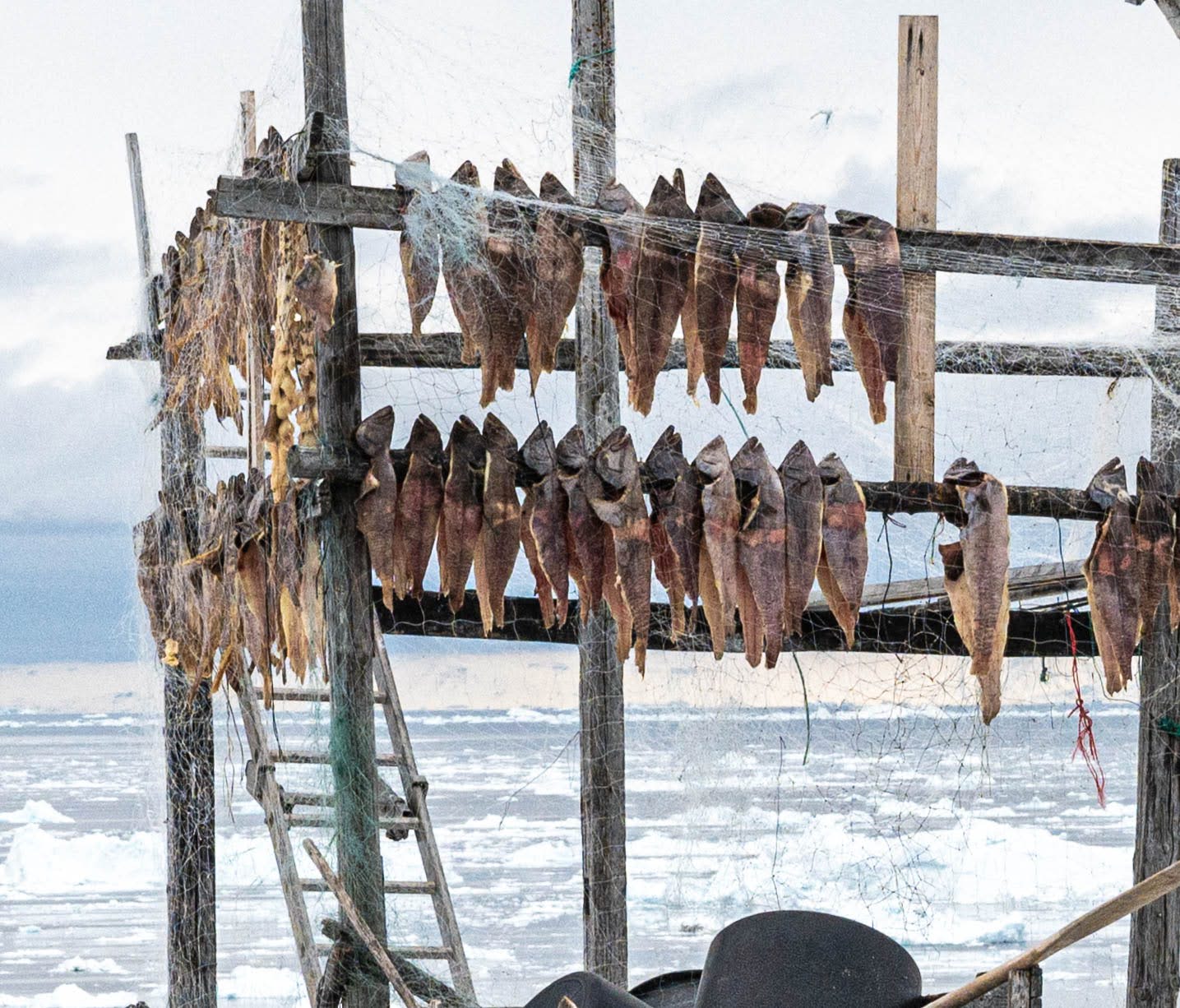 The day’s catch dries on a rack in Ilulissat, Greenland.