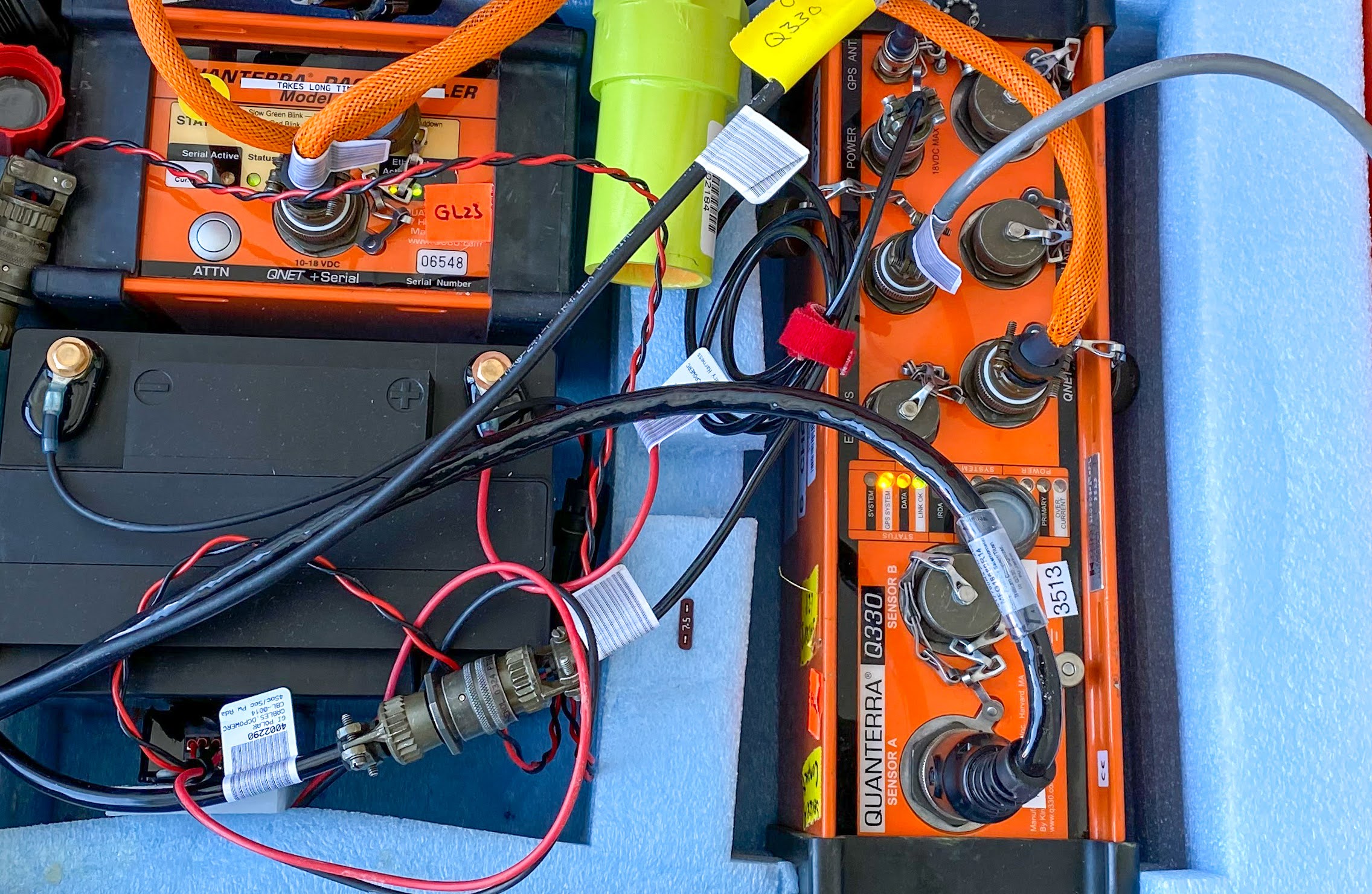 Data collection boxes are tested to get them ready for the field season on the western Greenland Ice Sheet. Ilulissat Greenland.