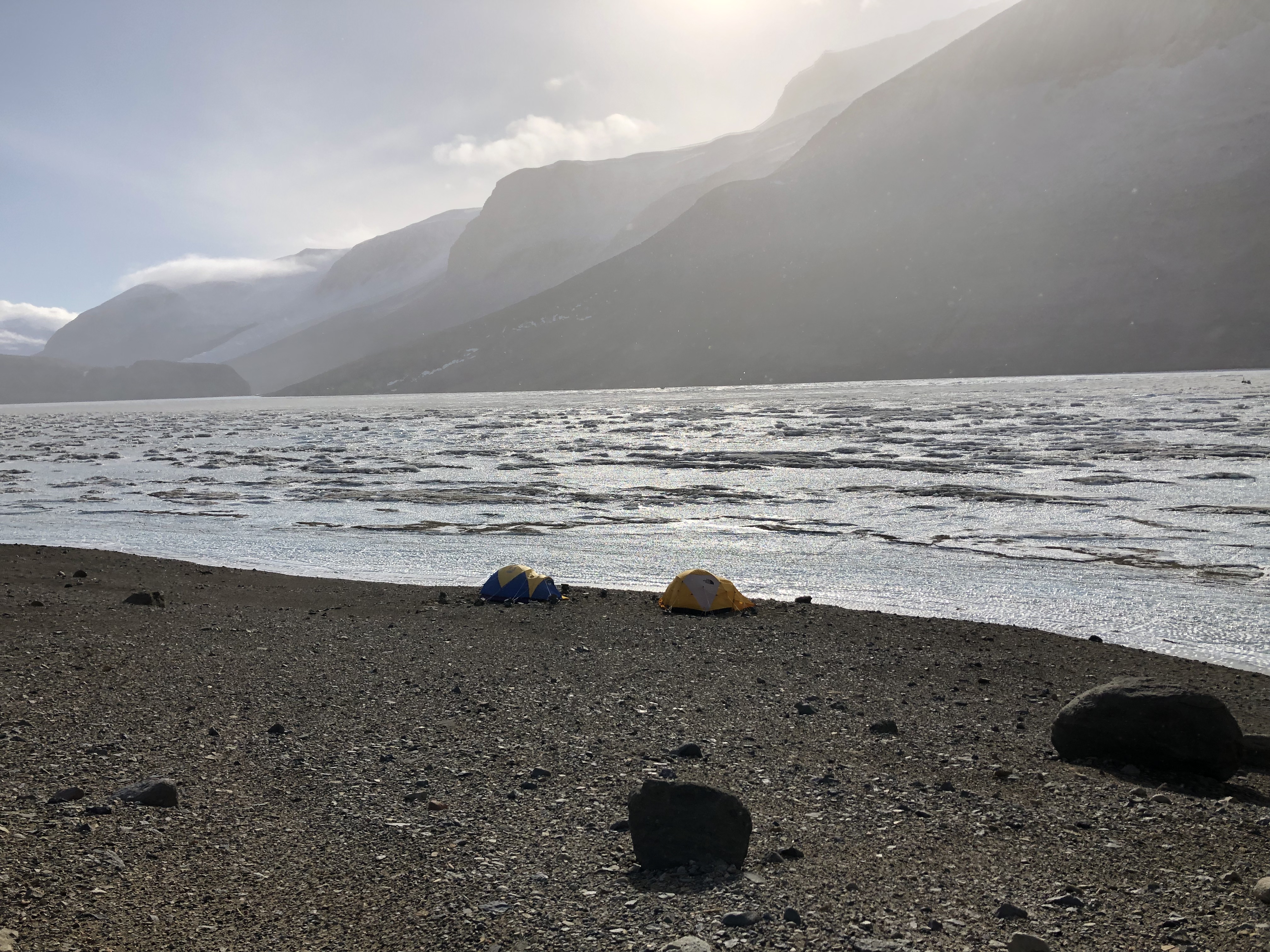 Tents are set up near Lake Bonney, McMurdo Dry Valleys, Antarctica.