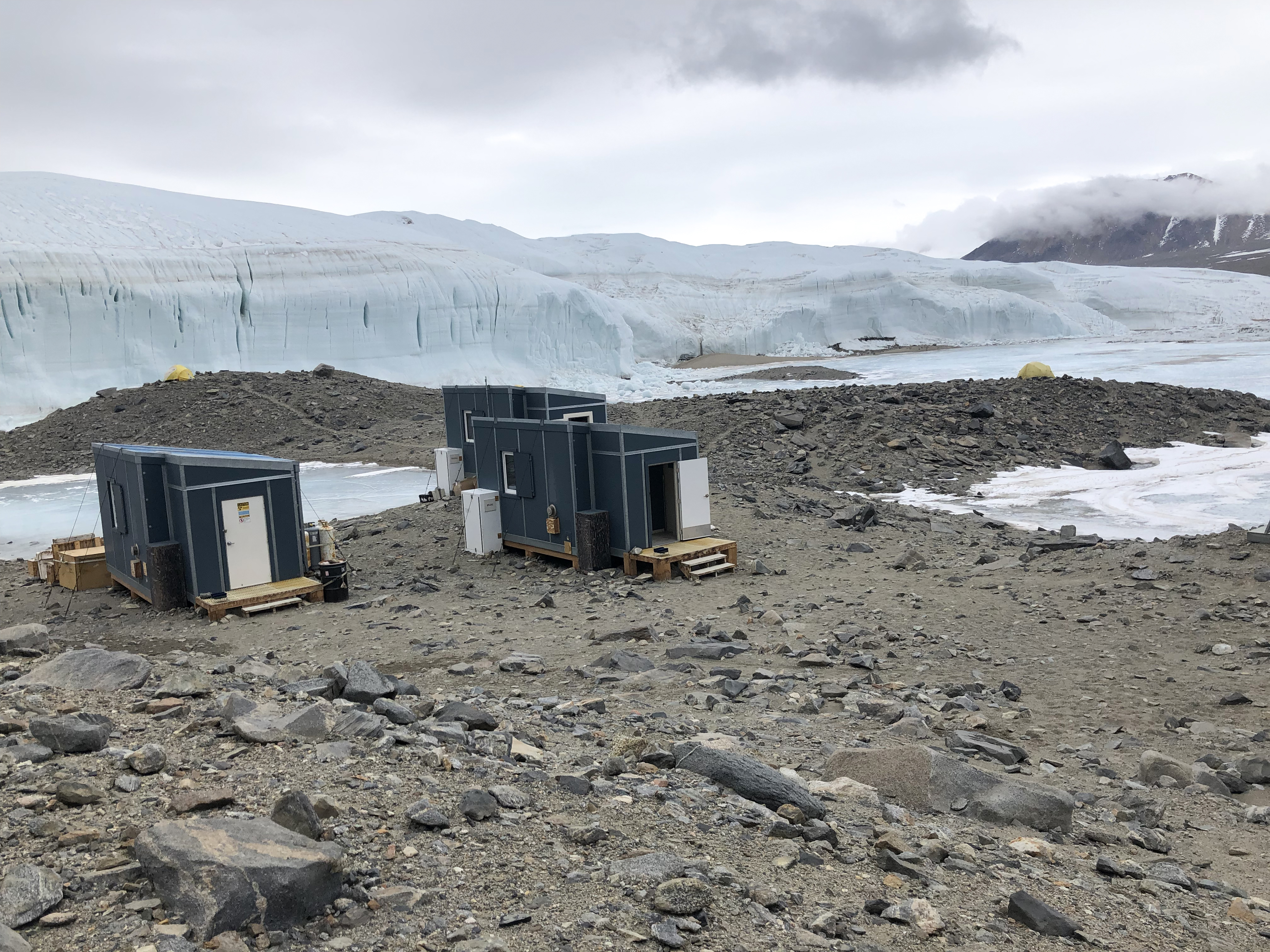 The science camp on the shore of Lake Hoare next to Canada Glacier in the McMurdo Dry Valleys, Antarctica.