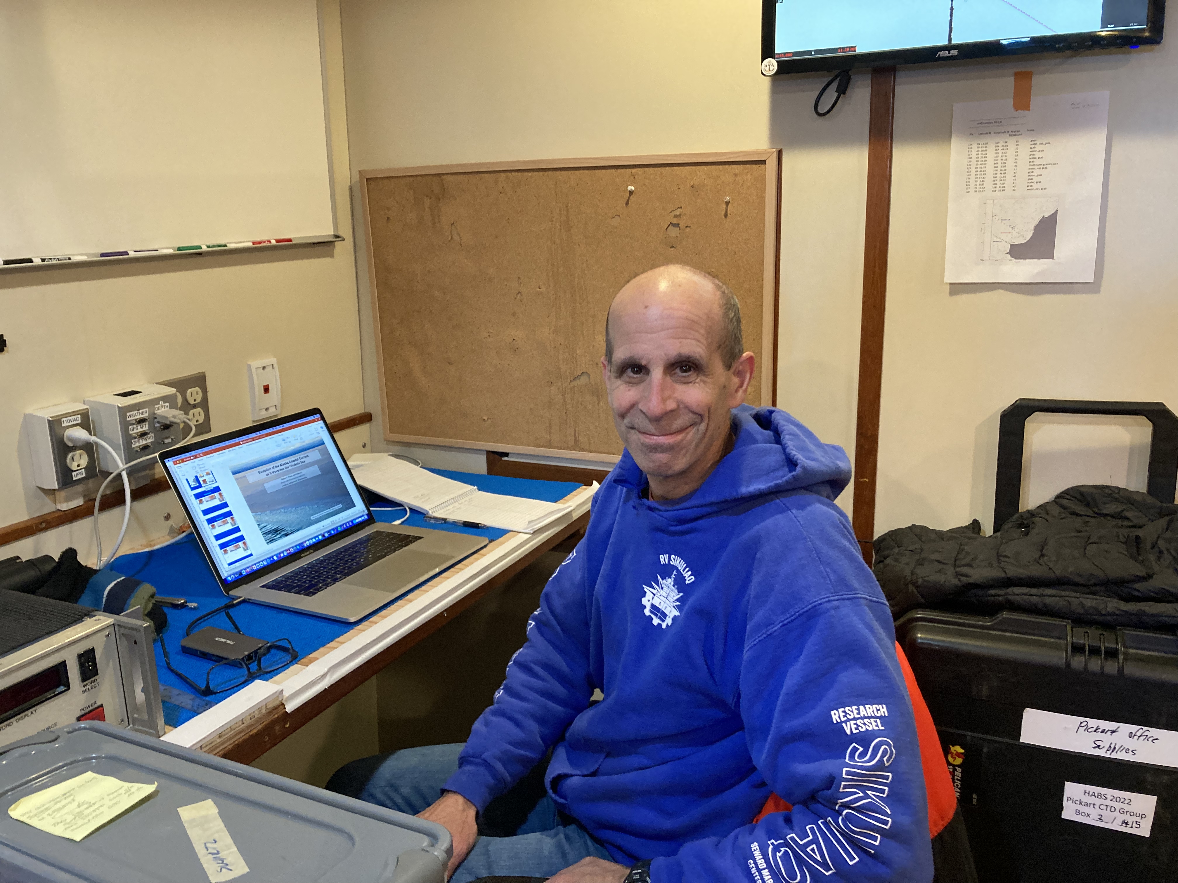 Chief Scientist Bob Pickart takes a break from data analysis. Aboard the Norseman II in the Chukchi Sea.