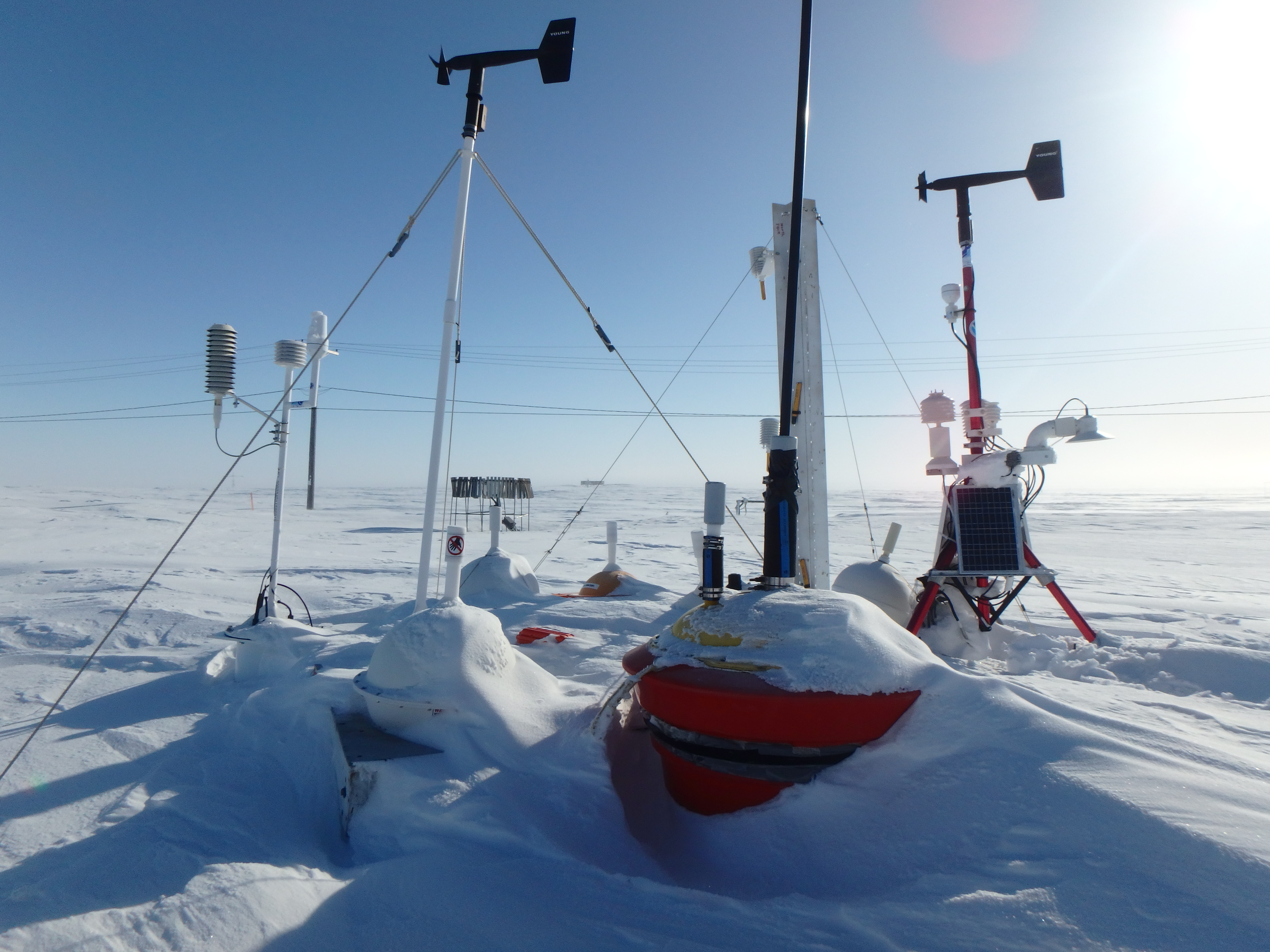 A view of the International Arctic Buoy Programme test site located between the Department of Energy Atmospheric Radiation Measurement site and the NOAA Barrow Atmospheric Baseline Observatory. 8 km northeast of Utqiagvik, Alaska.