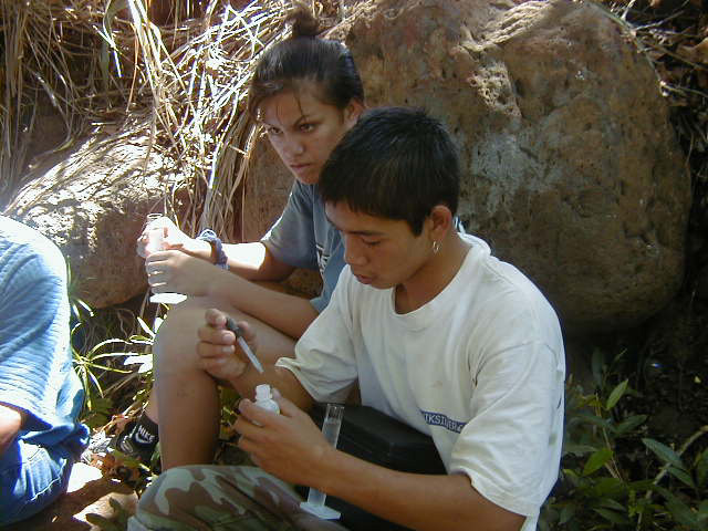 Students perfom water quality analysis in the field.