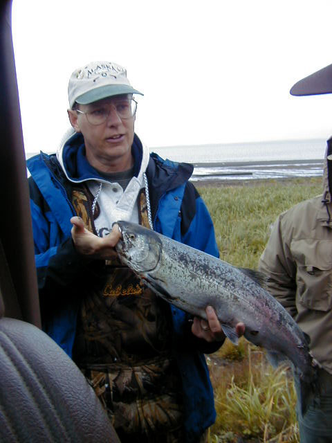 Salmon (silver?) shown by biologist from Izembek NWR to the participants in the Steller's Eider study in conjunction with TEA 1999.