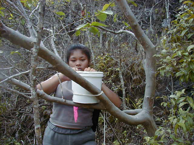 Collecting forest samples is part of the environment component in the Hawaiian studies course at Waianae High School