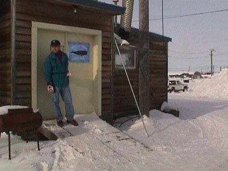 Aaron Stupple at the entrance to the Arctic Research Facility (ARF) in Barrow. 4/2/99