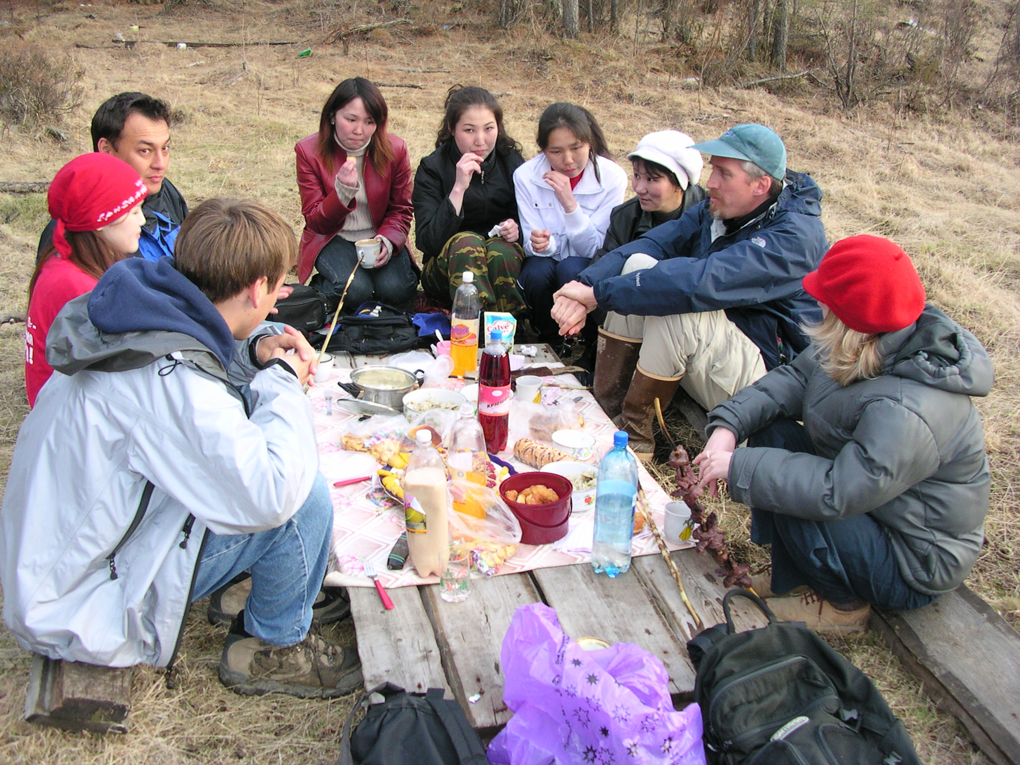 TREC researcher Max Holmes picnics with the research team and local community members near the Lena River, Siberia