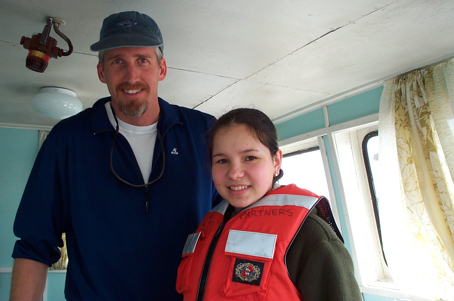 TREC researcher Max Holmes with one of the Zhigansk students assisting in the researcher on the Lena River, Siberia.