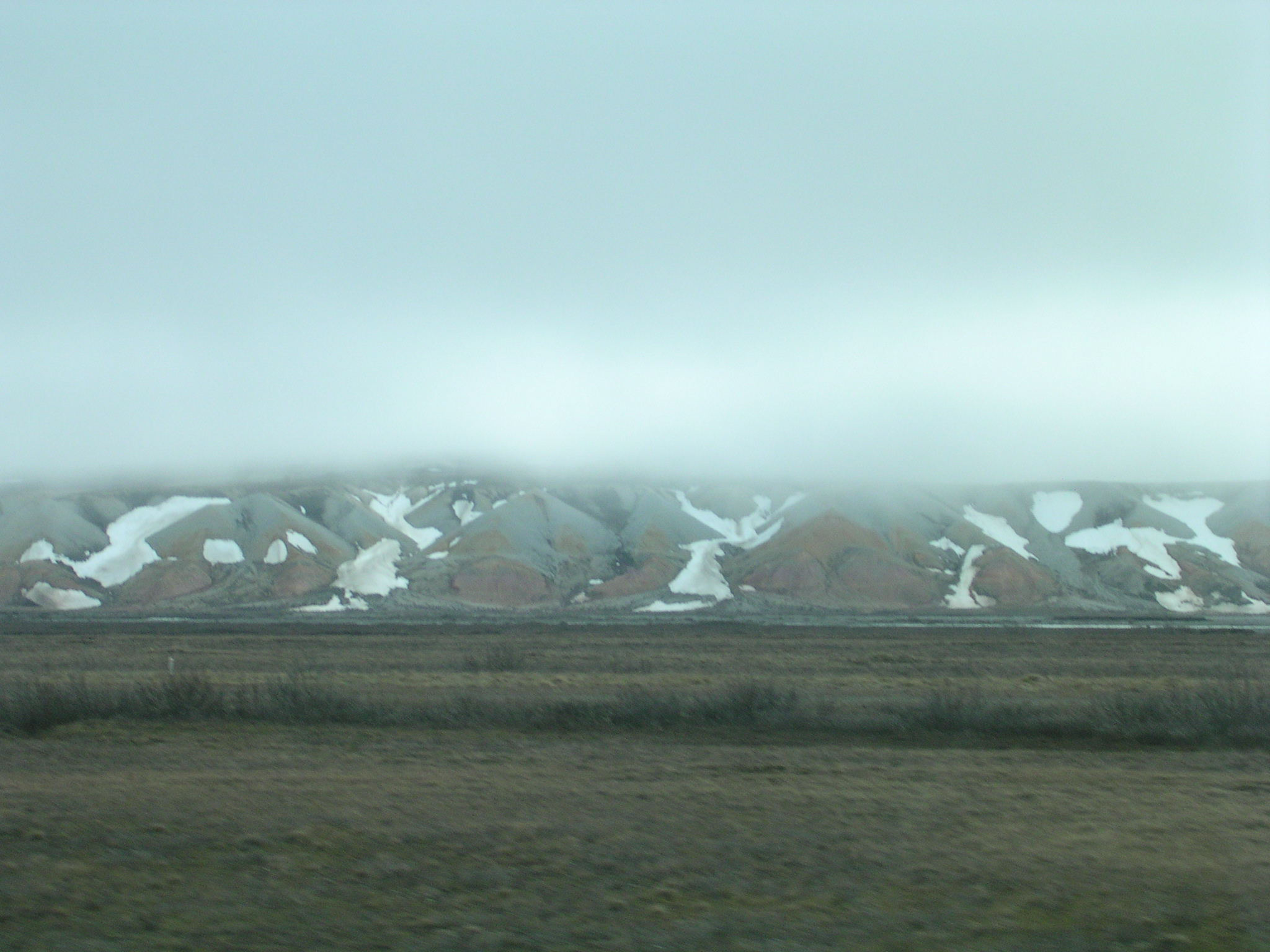 Pingos, or frost-wedge hills consisting of a layer of soil over a large core of ice, located on the North Slope of Alaska.