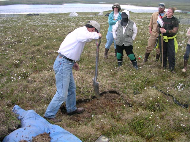 Researcher Chien-Lu Ping digs a soil pit at Toolik, AK.