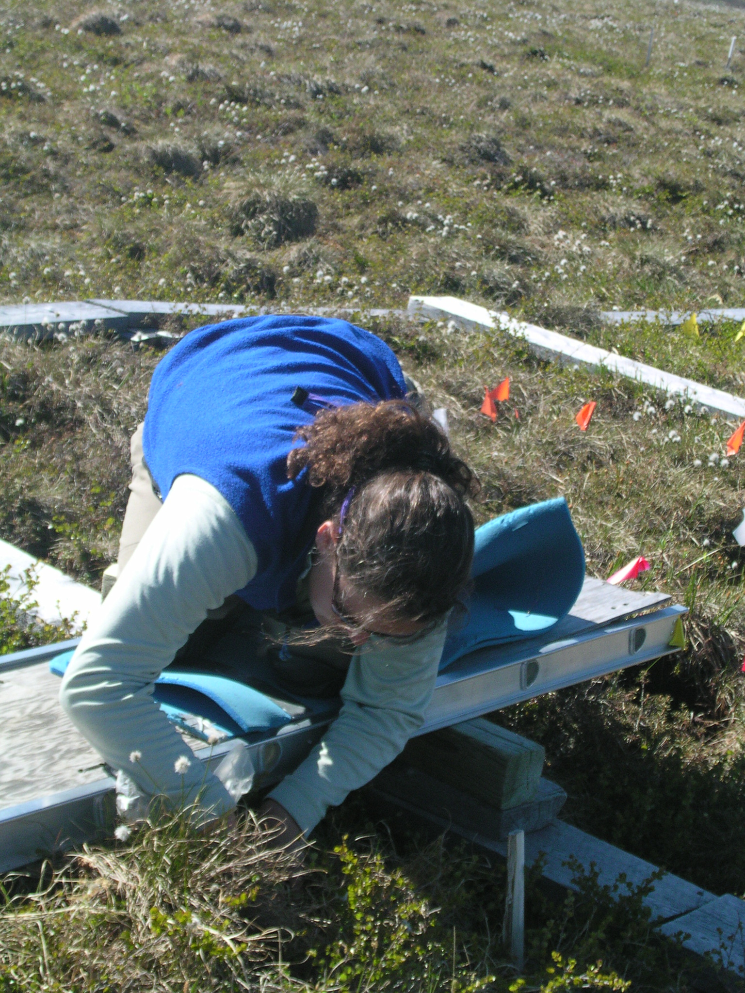 Working in the research plots located at the Long Term Ecological Research (LTER) station, Toolik Lake, AK.