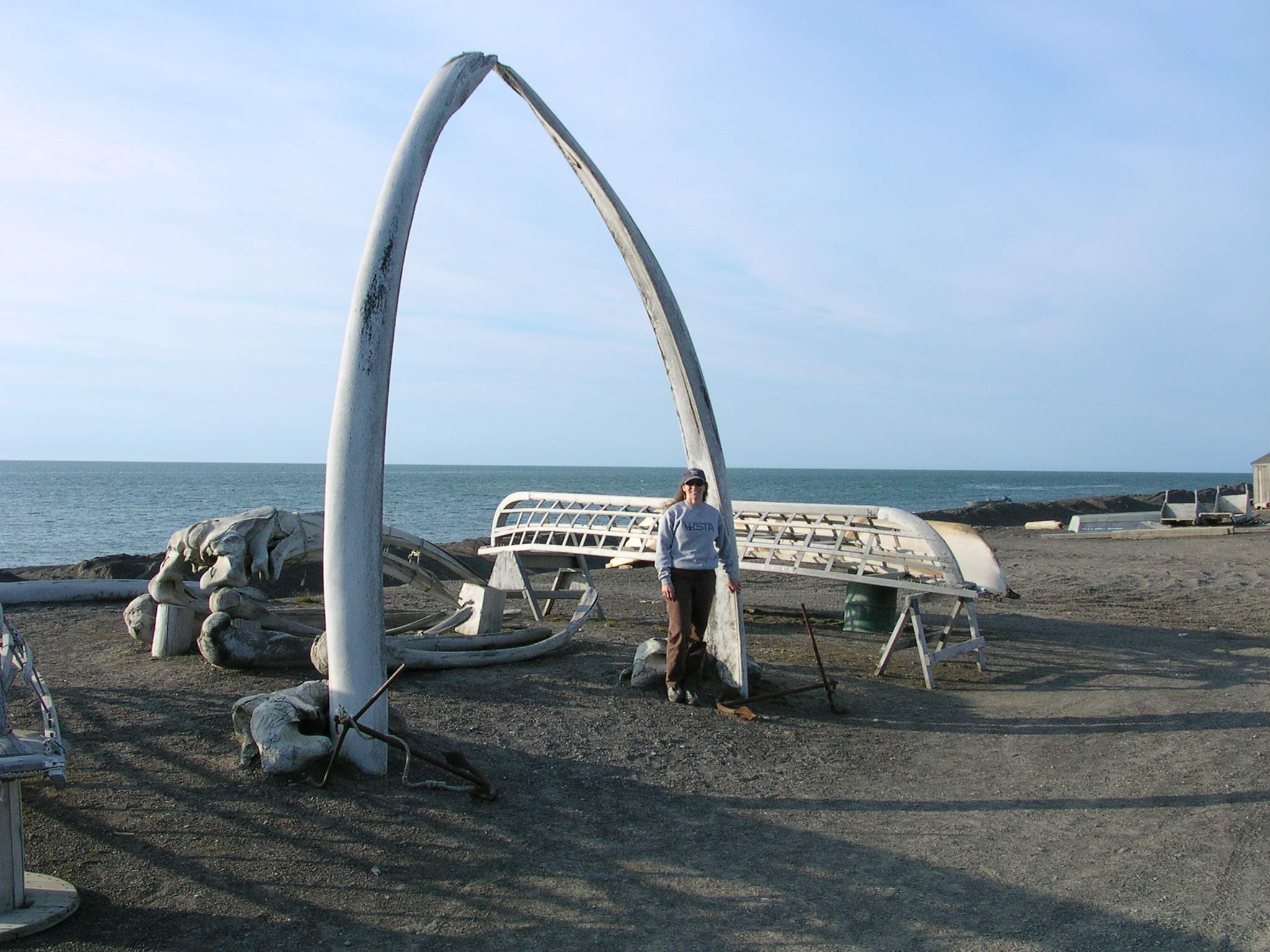 TREC teacher Misty Nikula-Ohlsen and whale bones on the beach near Point Barrow, Alaska.