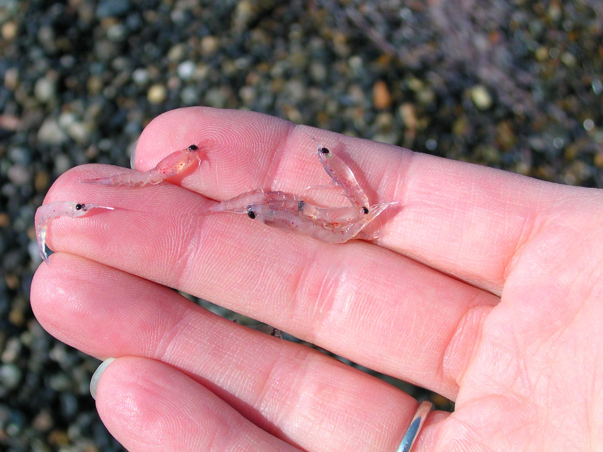 Krill, small shrimplike planktonic crustaceans that are an important food source for a number of large marine animals, most notably baleen whales such as the humpback whale, seen on the beach near Point Barrow, Alaska.