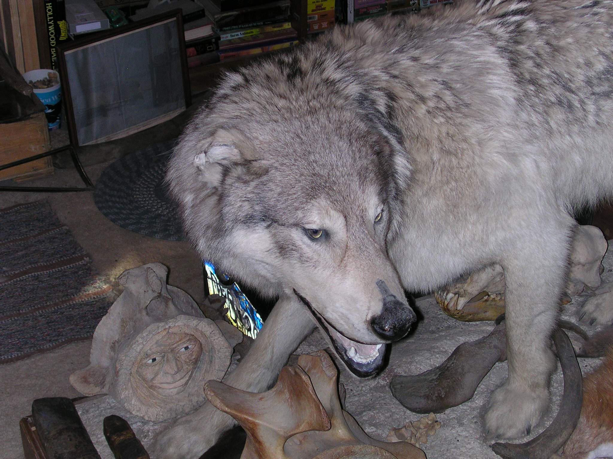 A stuffed wolf seen at Joe's Museum in Barrow, Alaska.
