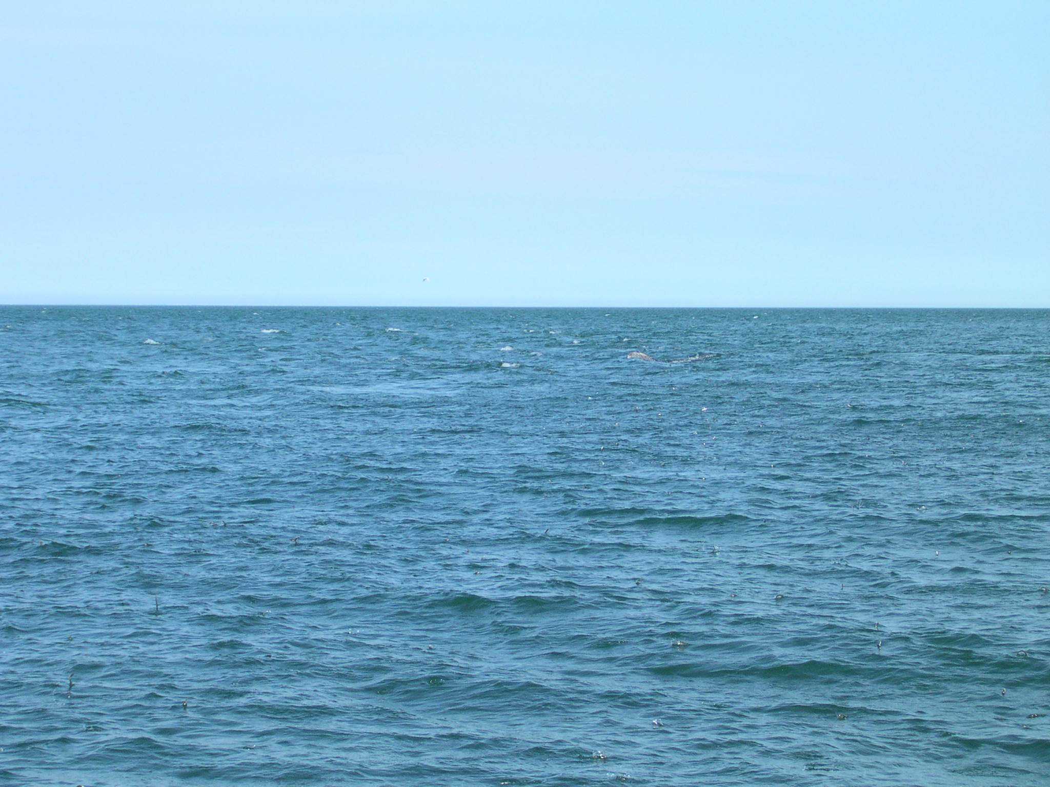A view of the Arctic Ocean near Barrow, Alaska with thousands of tiny little fish jumping making the water look as those it was raining and a whale feeding on krill in the water.