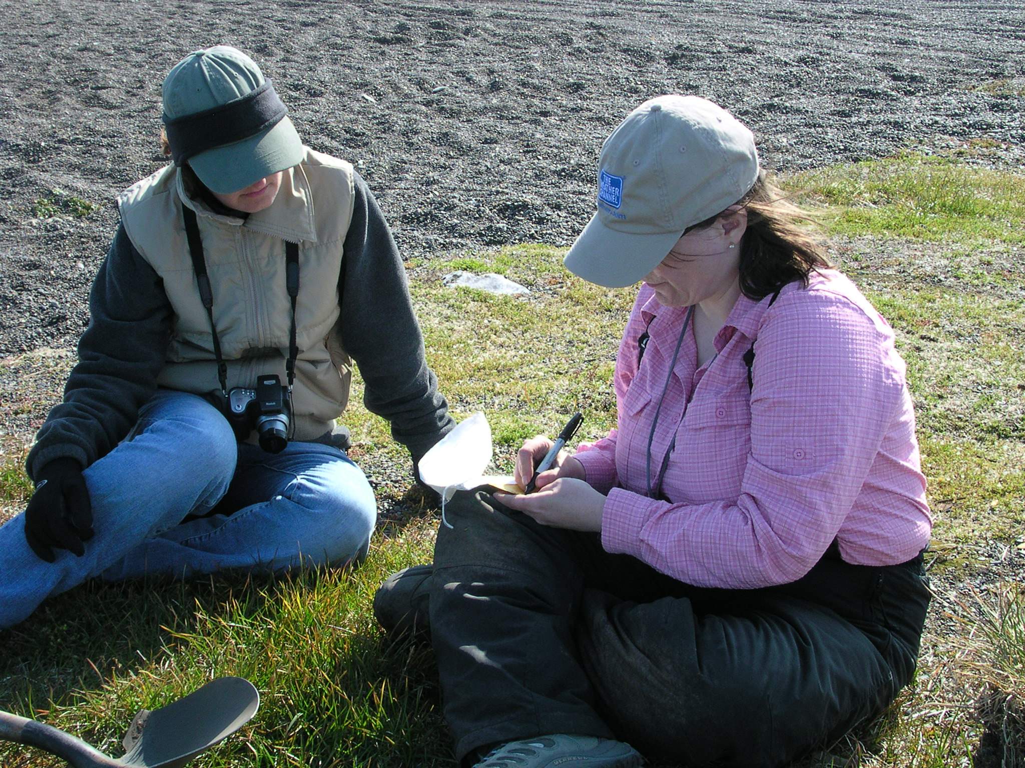 Documenting archeology findings with Anne Jensen near Barrow, Alaska.