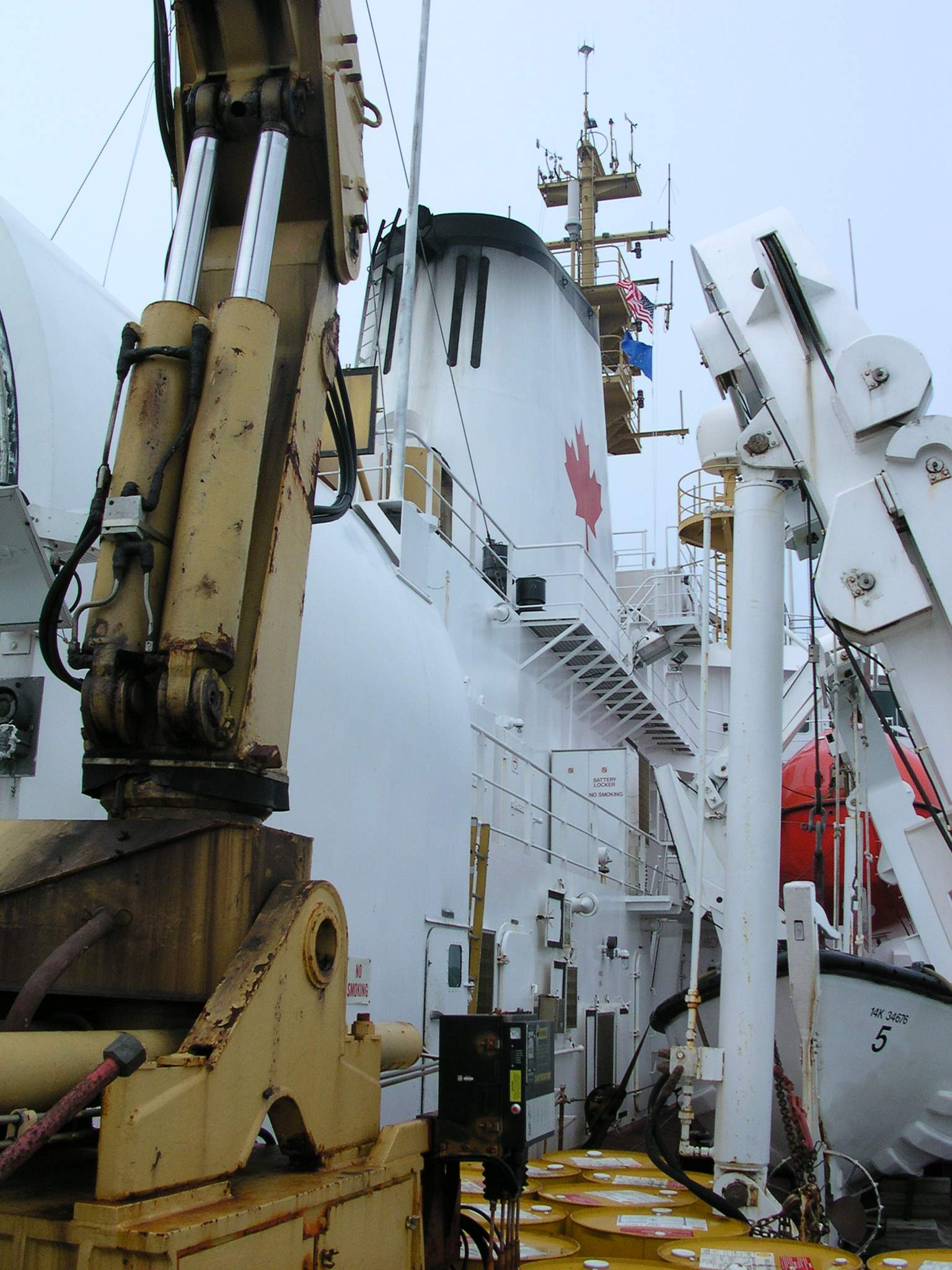 A view of the superstructure of the Canadian Coast Guard Icebreaker Sir Wilfrid Laurier.