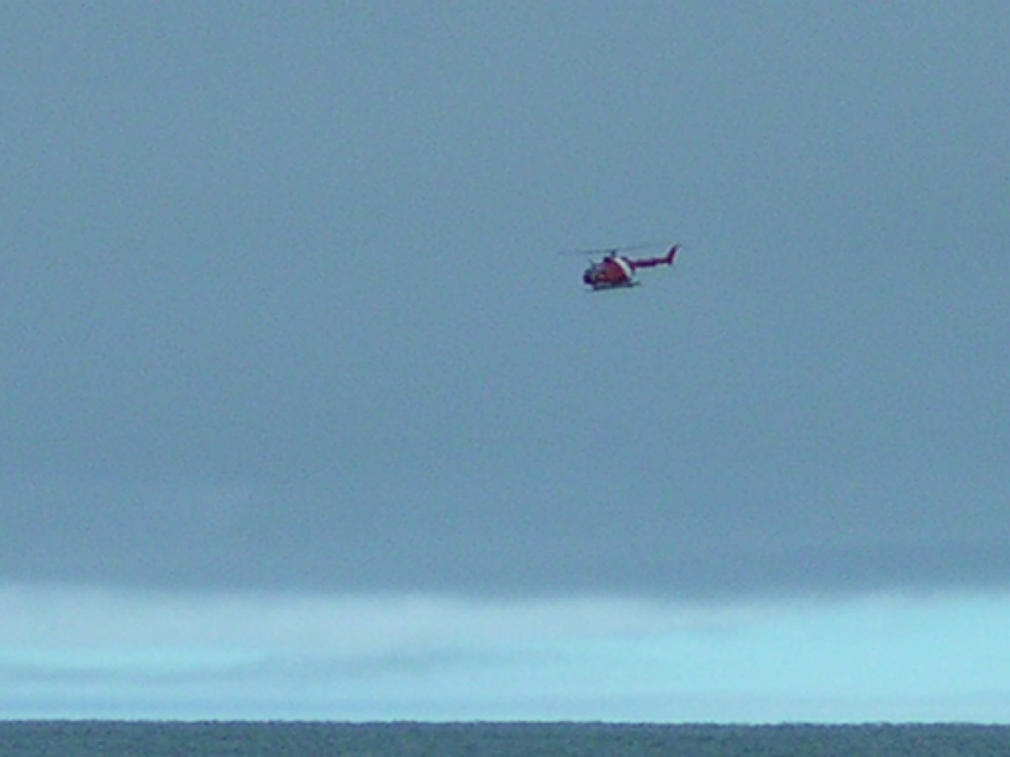 A helicopter from the Canadian Coast Guard Icebreaker Sir Wilfrid Laurier flies near Barrow, Alaska.