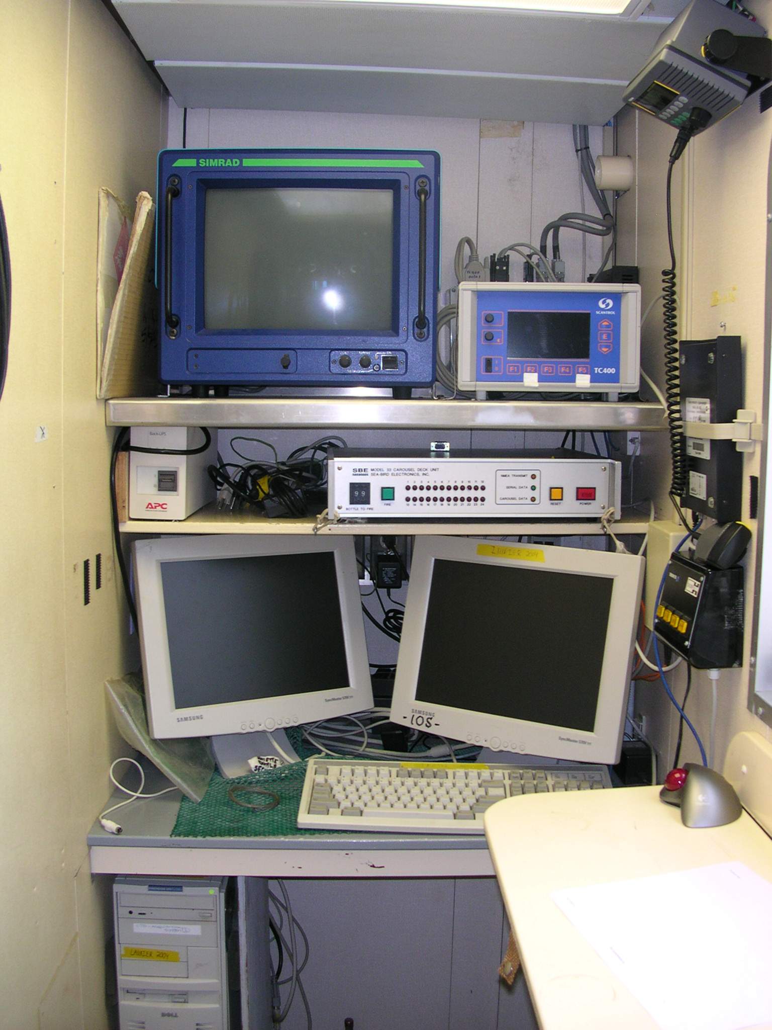The consoles the CTD sends its reading back to aboard the Canadian Coast Guard Icebreaker Sir Wilfrid Laurier.
