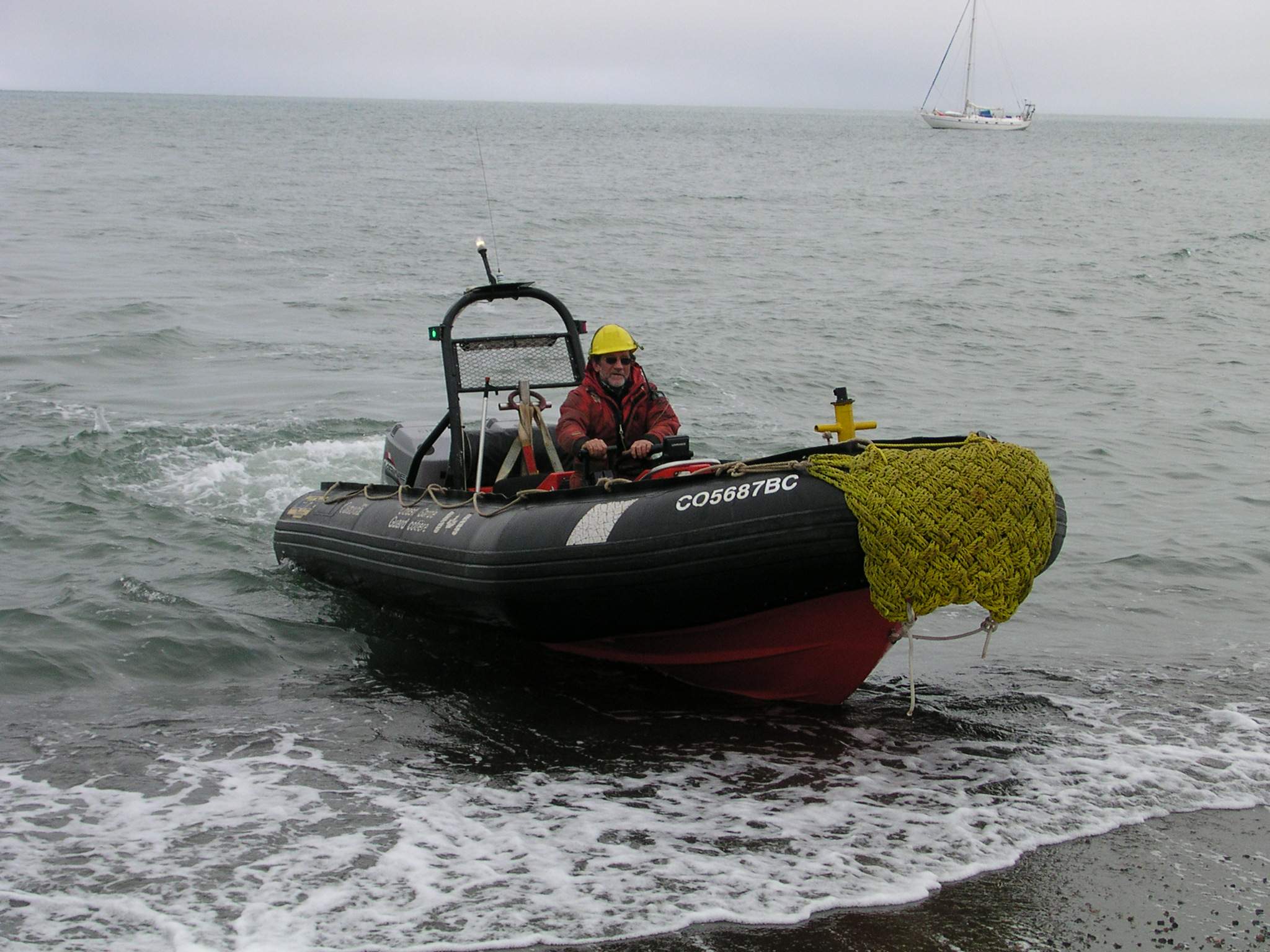 Beaching of the zodiac that carried visitors to and from the Canadain Coast Guard Icebreaker Sir Wilfrid Laurier.