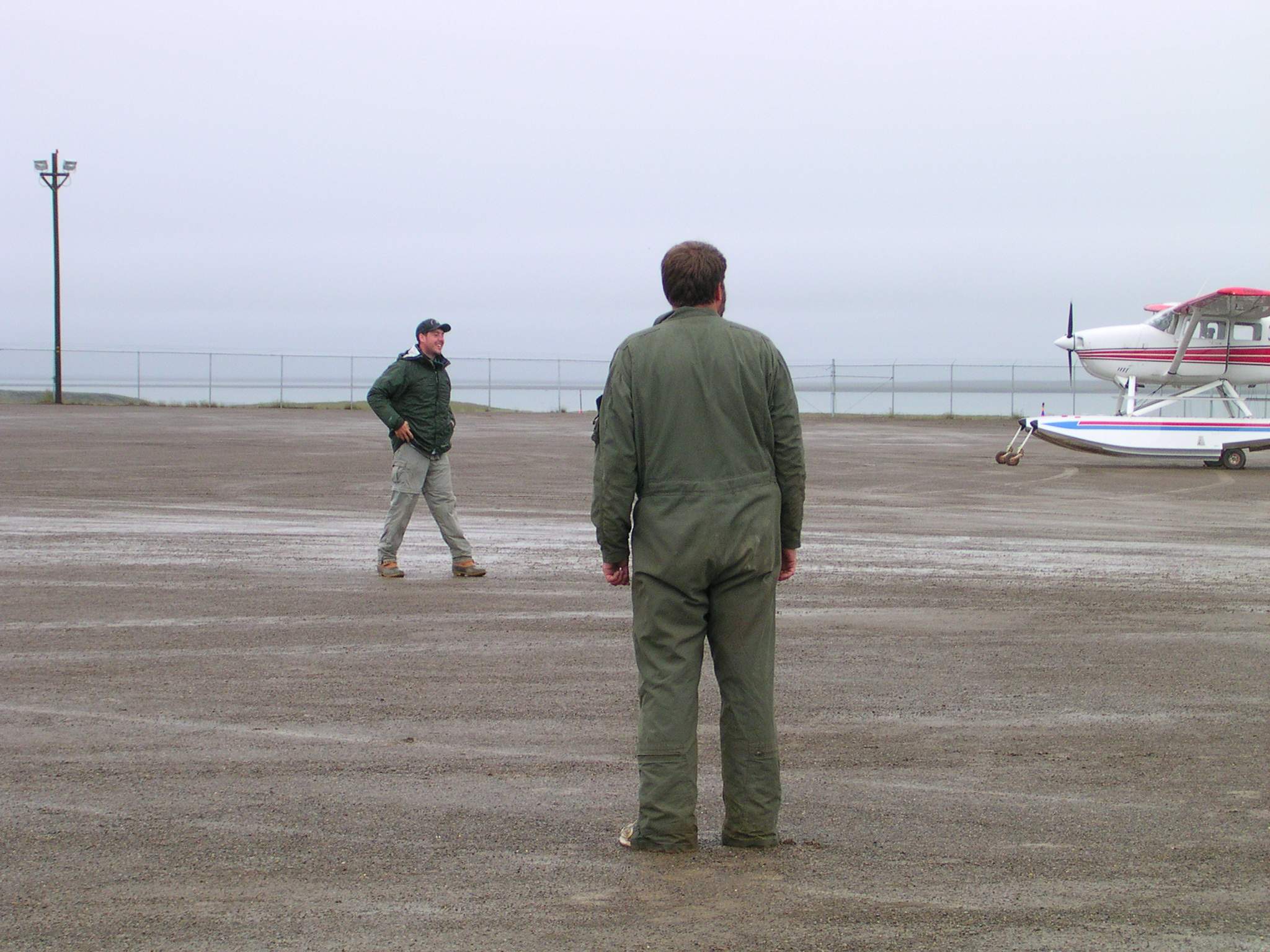 Paul Anderson and Julian Fischer play hackeysack in Barrow, Alaska.