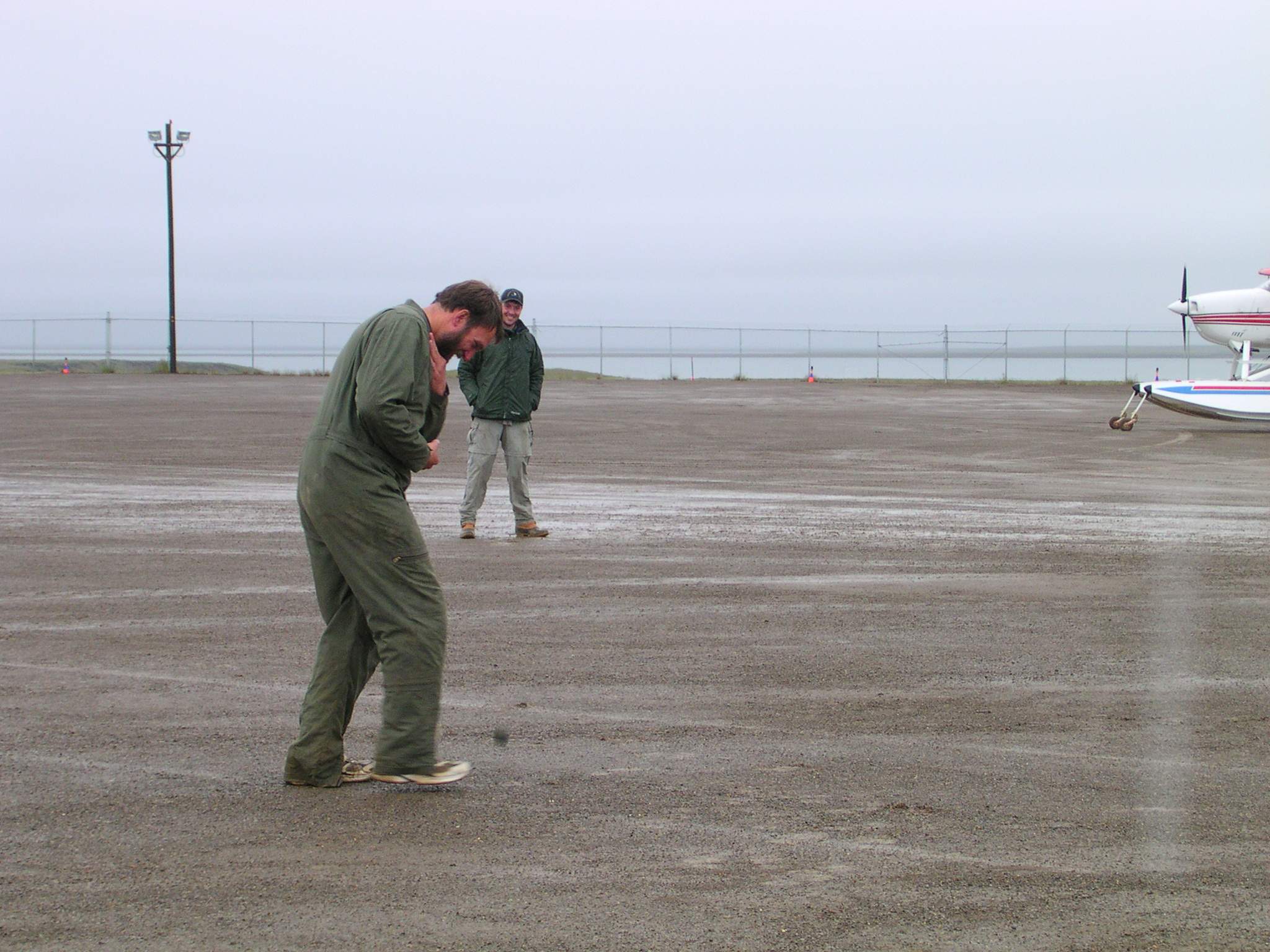 Paul Anderson and Julian Fischer play hackeysack in Barrow, Alaska.