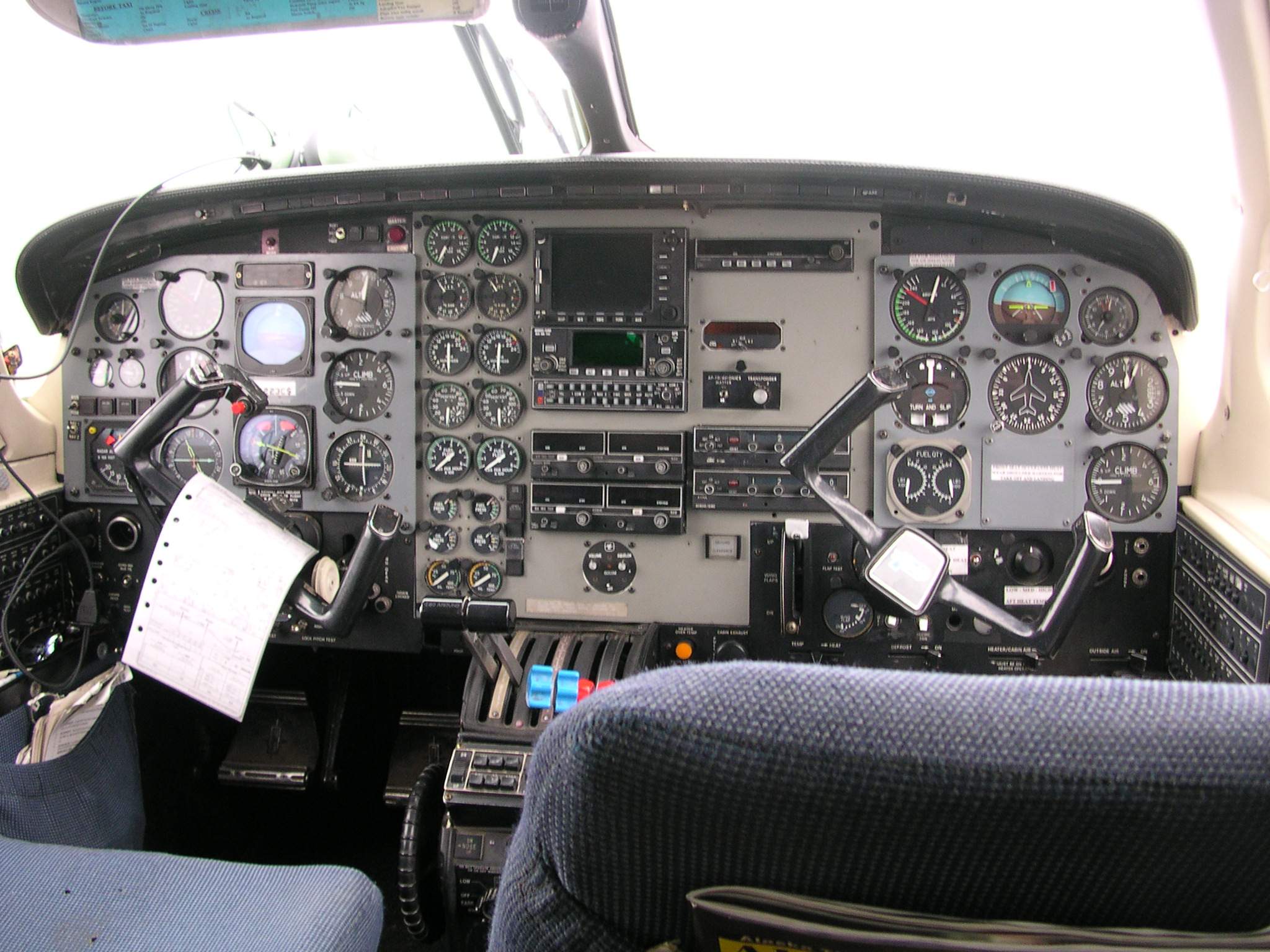 The cockpit of a Cape Smyth Air plane as seen by TREC teacher Misty Nikula-Ohlsen during her 2004 expedition to Barrow, Alaska.