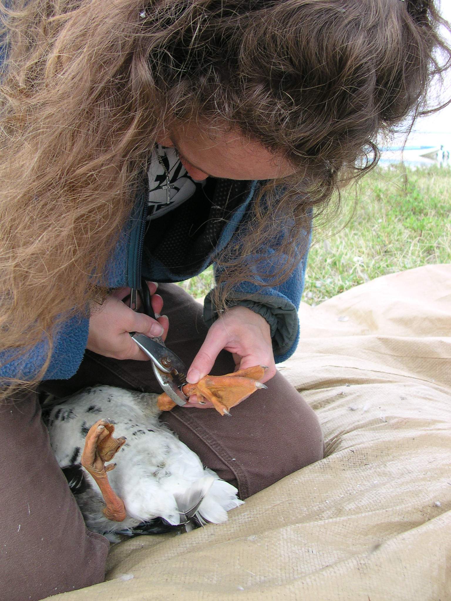 TREC teacher Misty Nikula-Ohlsen puts a band on a snow goose (*Chen caerulescens*) near Barrow, Alaska.