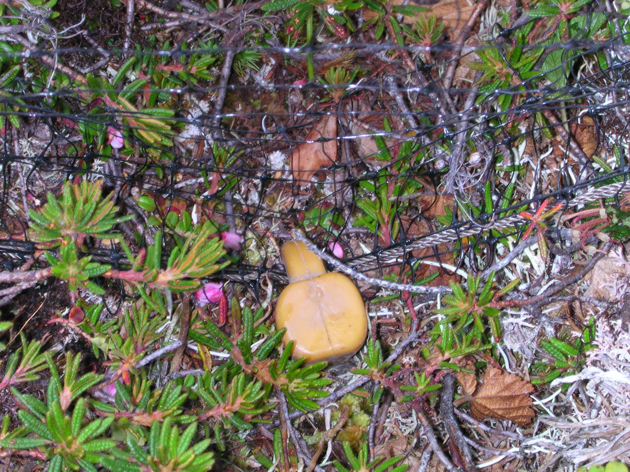 A tent stake is used to secure part of the corral used during the banding of snow geese (*Chen caerulescens*) near Barrow, Alaska.