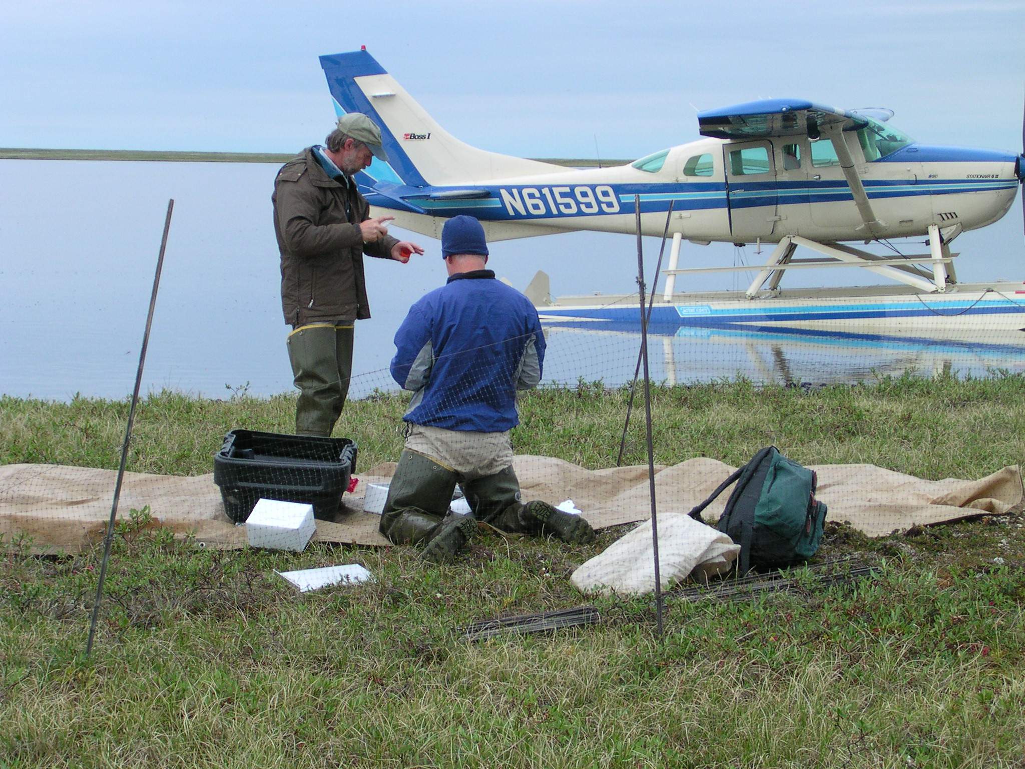 Setting up the banding station in preparation for banding snow geese(*Chen caerulescens*) near Barrow, Alaska.