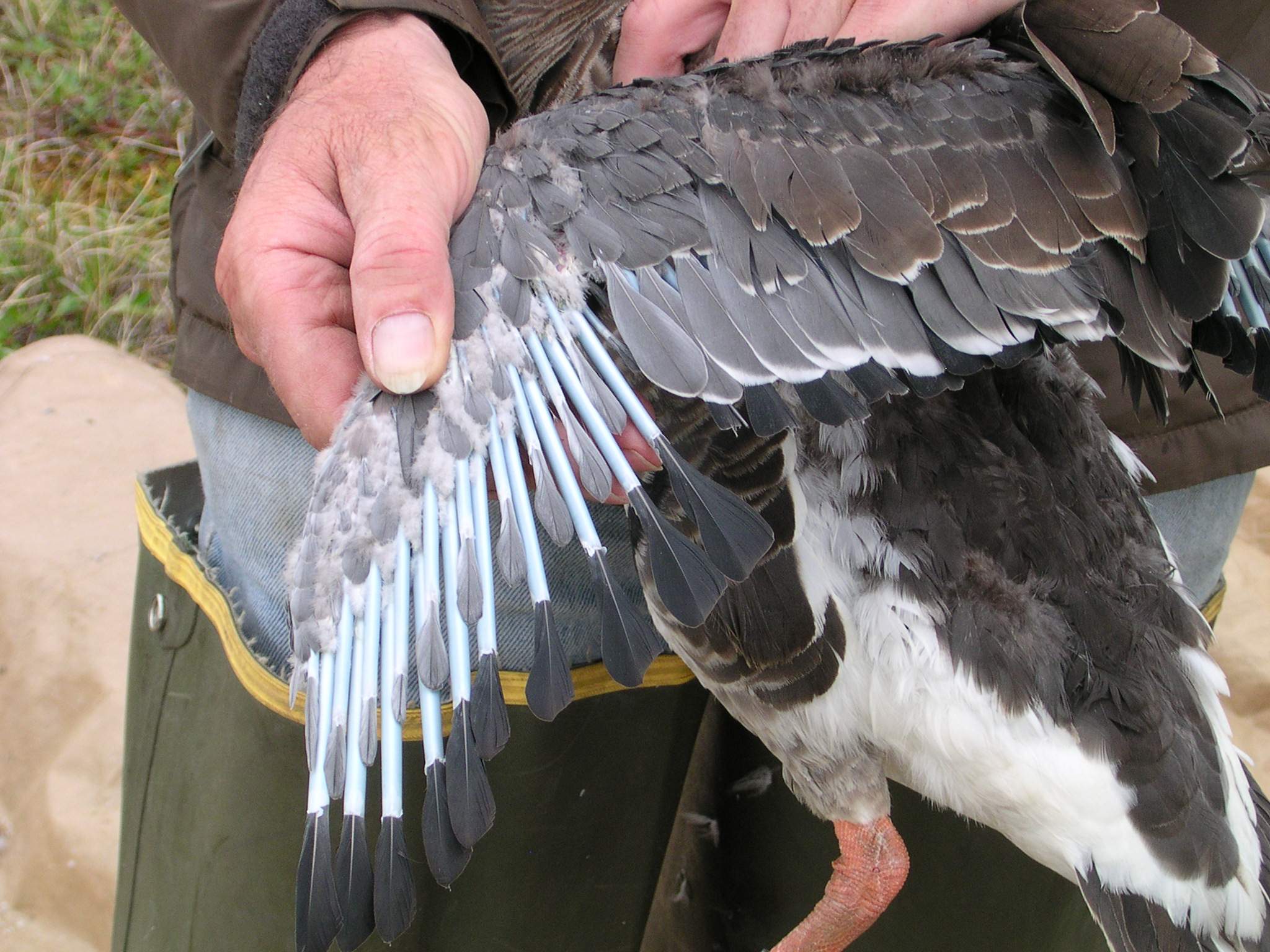 Blood quills, or new feathers, on a snow goose (*Chen caerulescens*) near Barrow, Alaska.