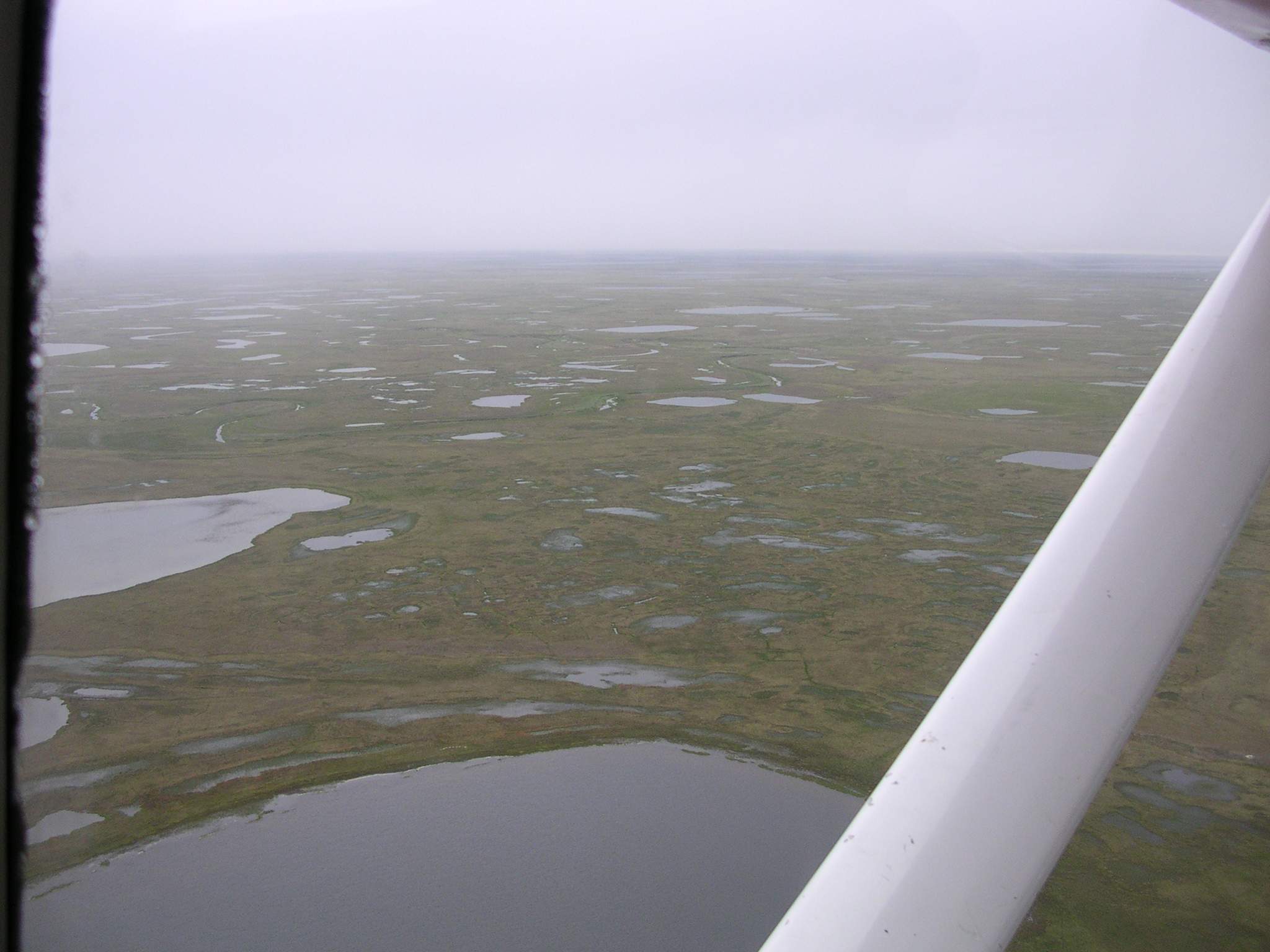 The tundra around Barrow, Alaska seen in the morning from a float plane.