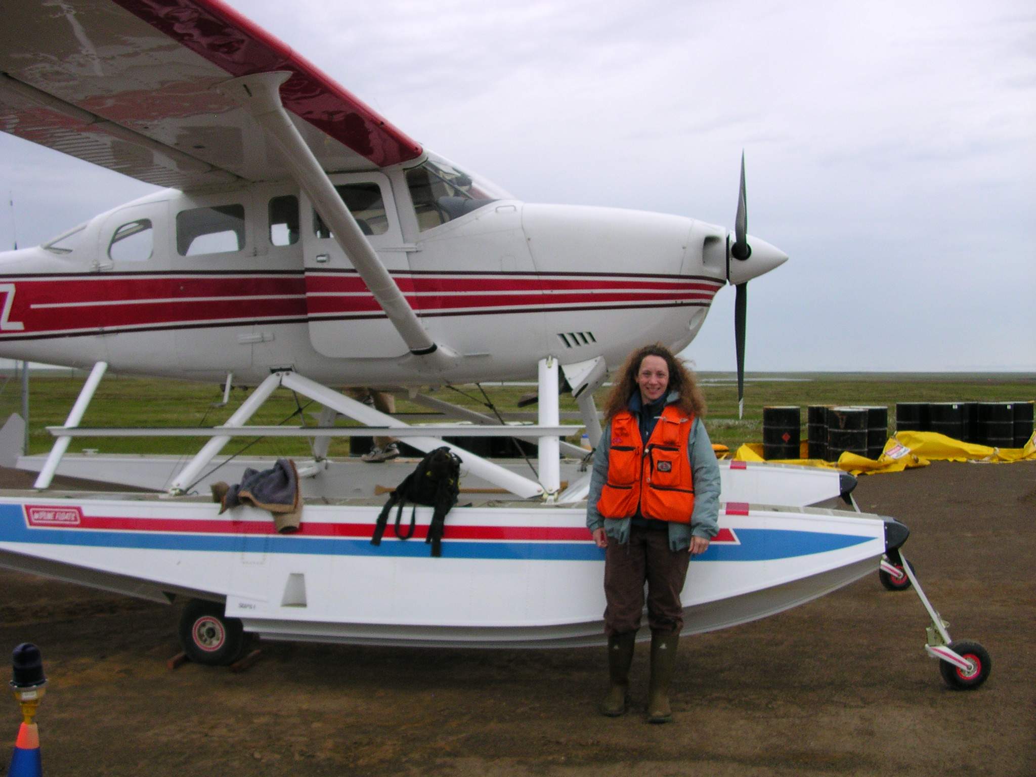 TREC teacher Misty Nikula-Ohlsen in front of a float plane near Barrow, Alaska.