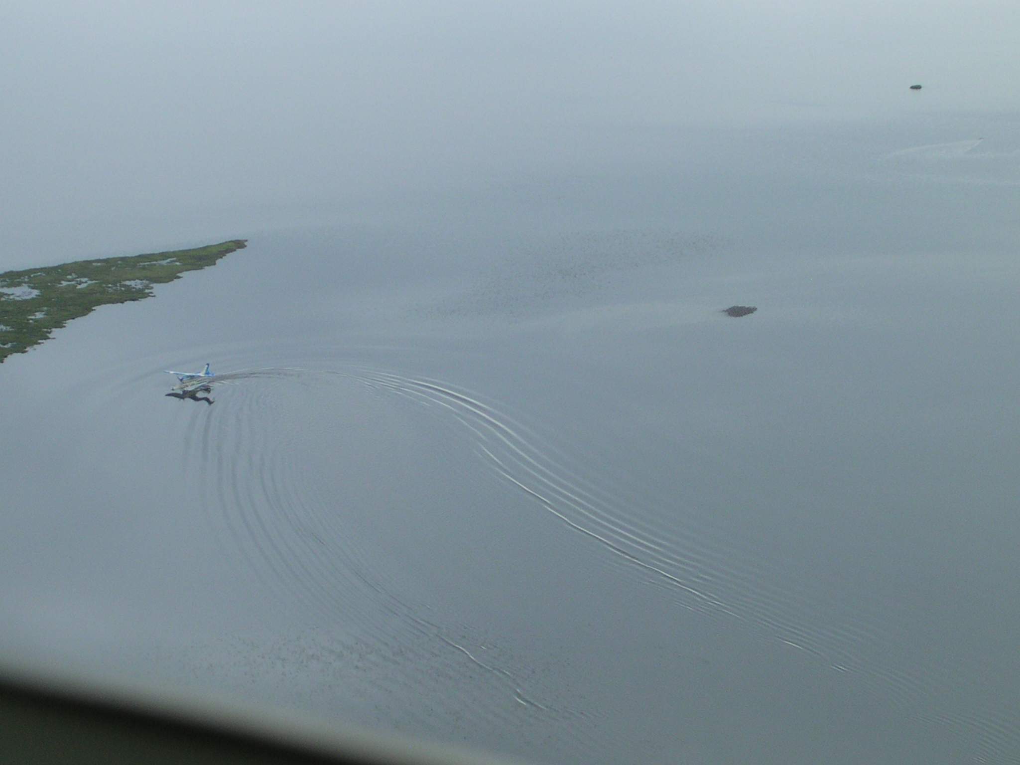 Pilot Bill Larned herds snow geese with his plane near Barrow, Alaska.
