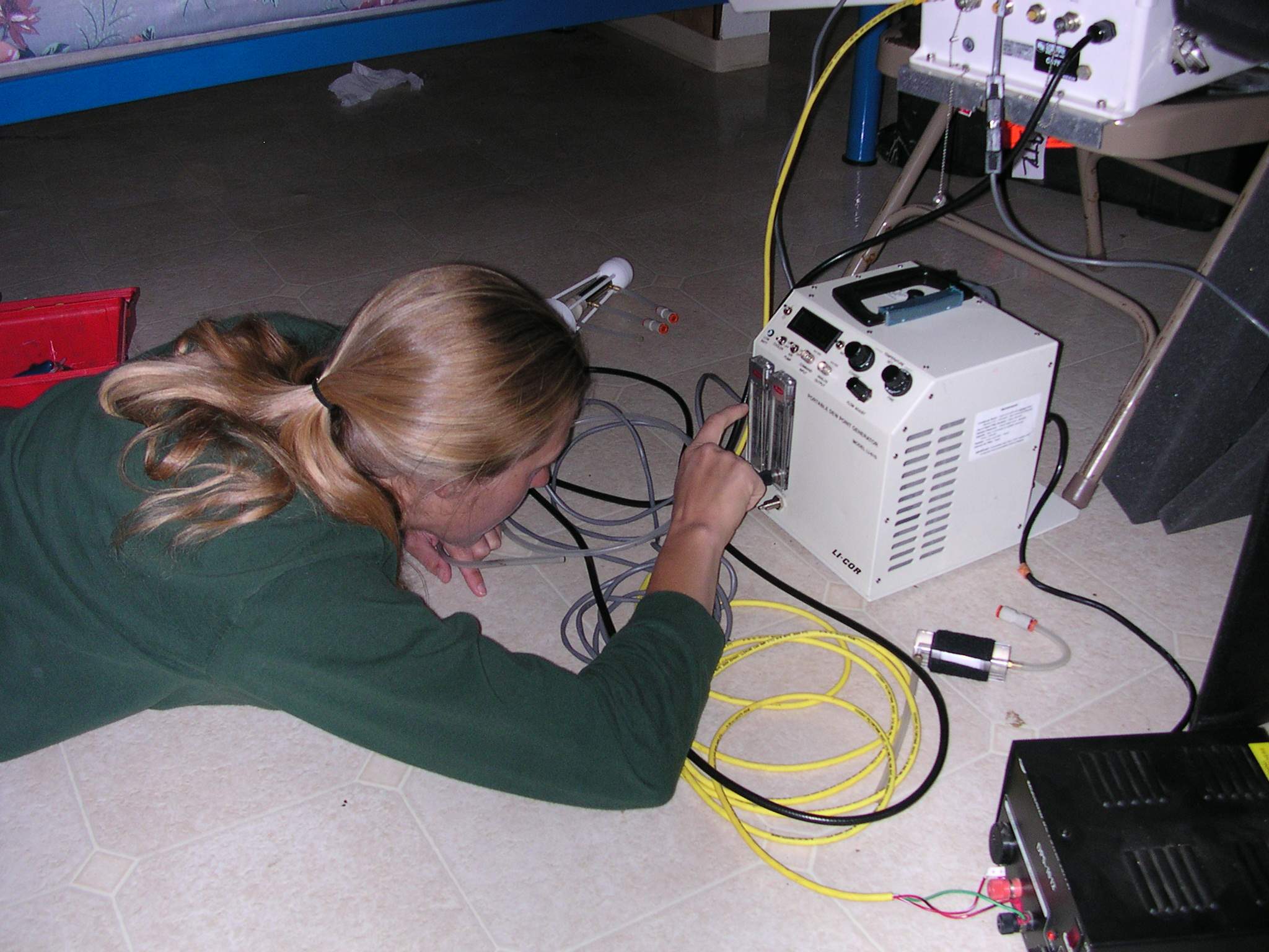 Setting the flow during the calibration of the Infrared Gas Analyzer (IRGA).