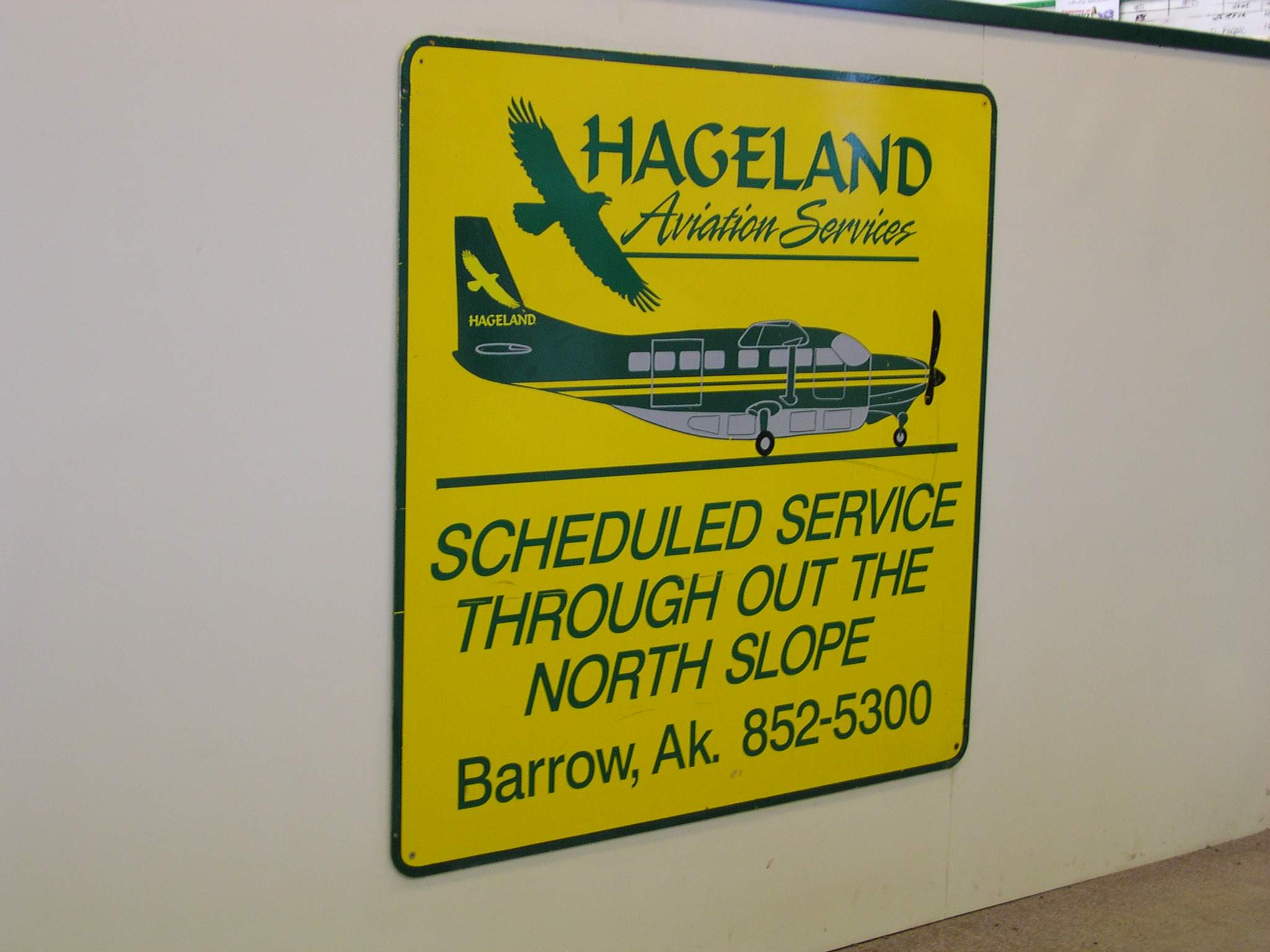 Hageland Aviation Services sign. They fly out of Barrow, Alaska.