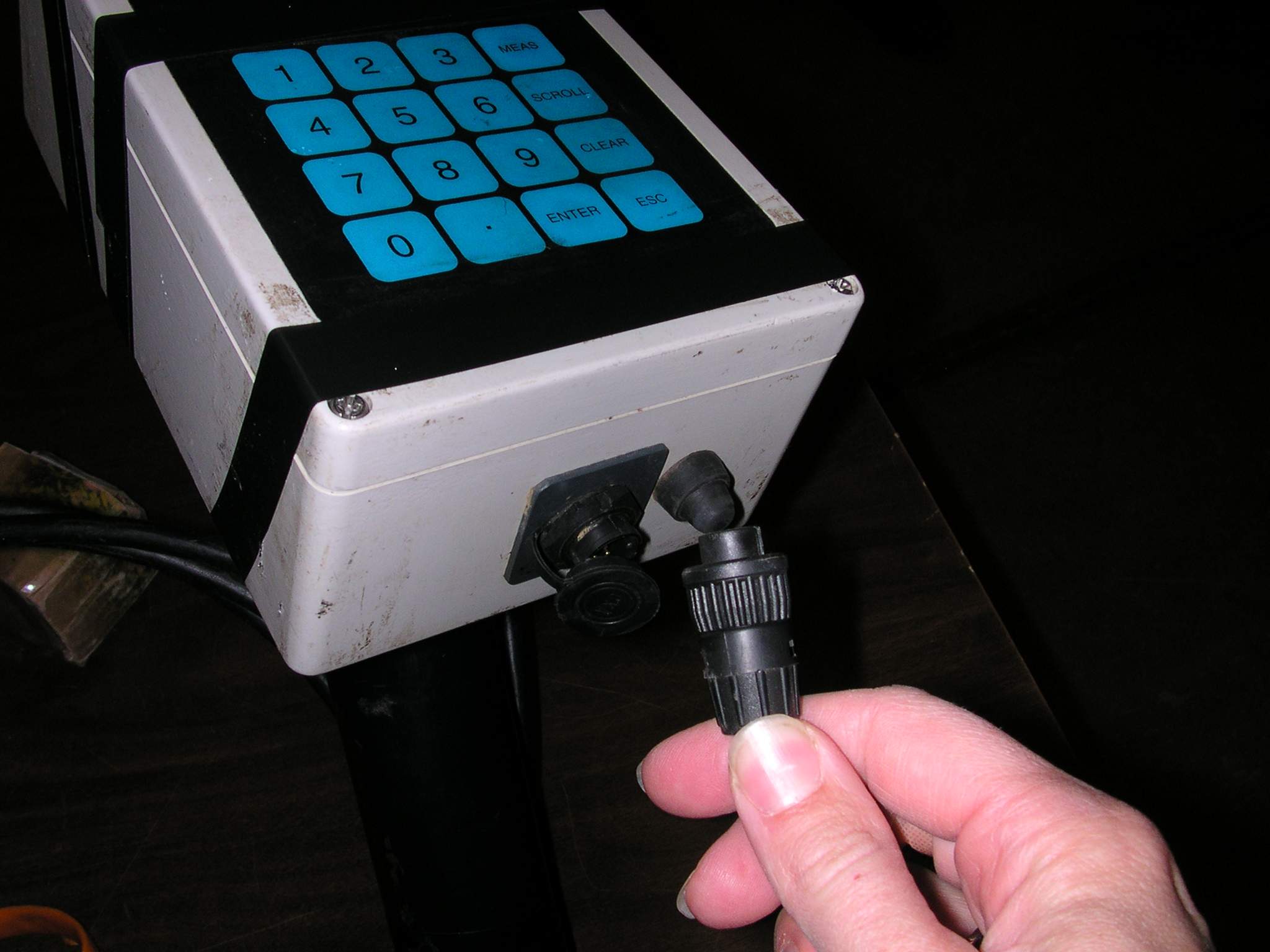 Connecting to the data logger to download soil data at Barrow, Alaska.