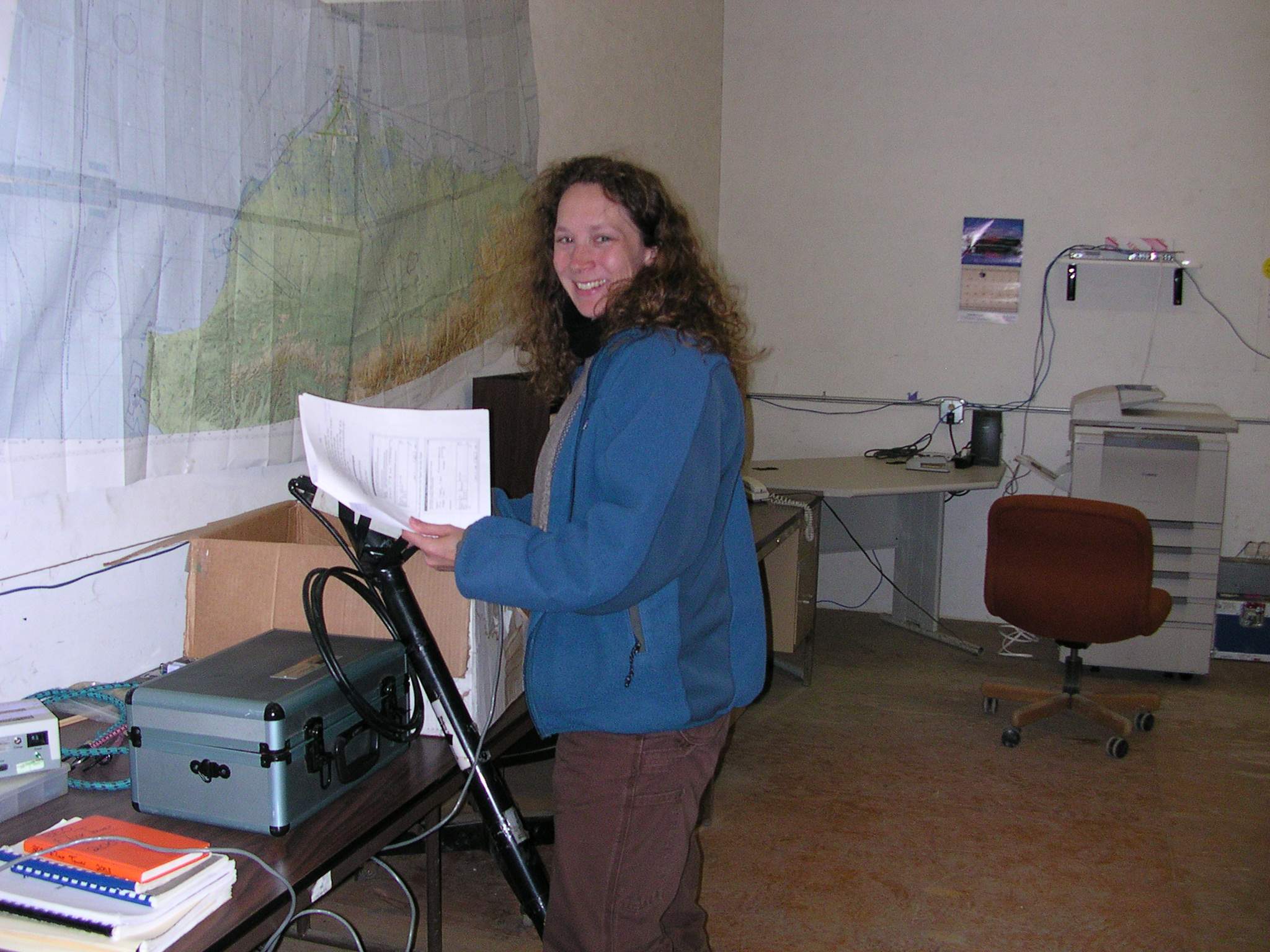TREC teacher Misty Nikula-Ohlsen downloading data in one of the laboratories in Barrow, Alaska.
