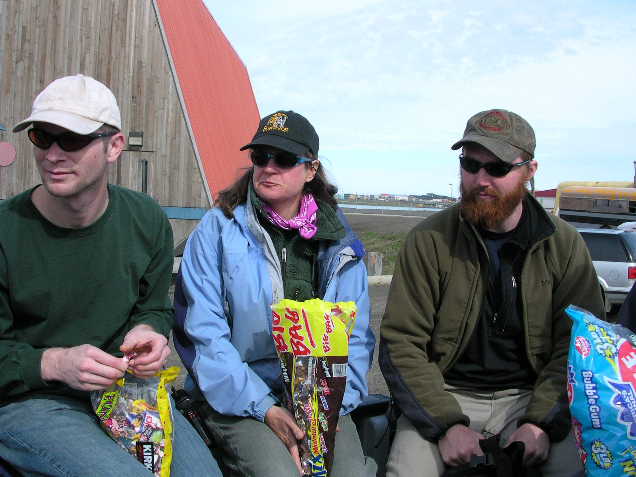 Waiting in the truck with candy during the 2004 4th of July parade in Barrow, Alaska.