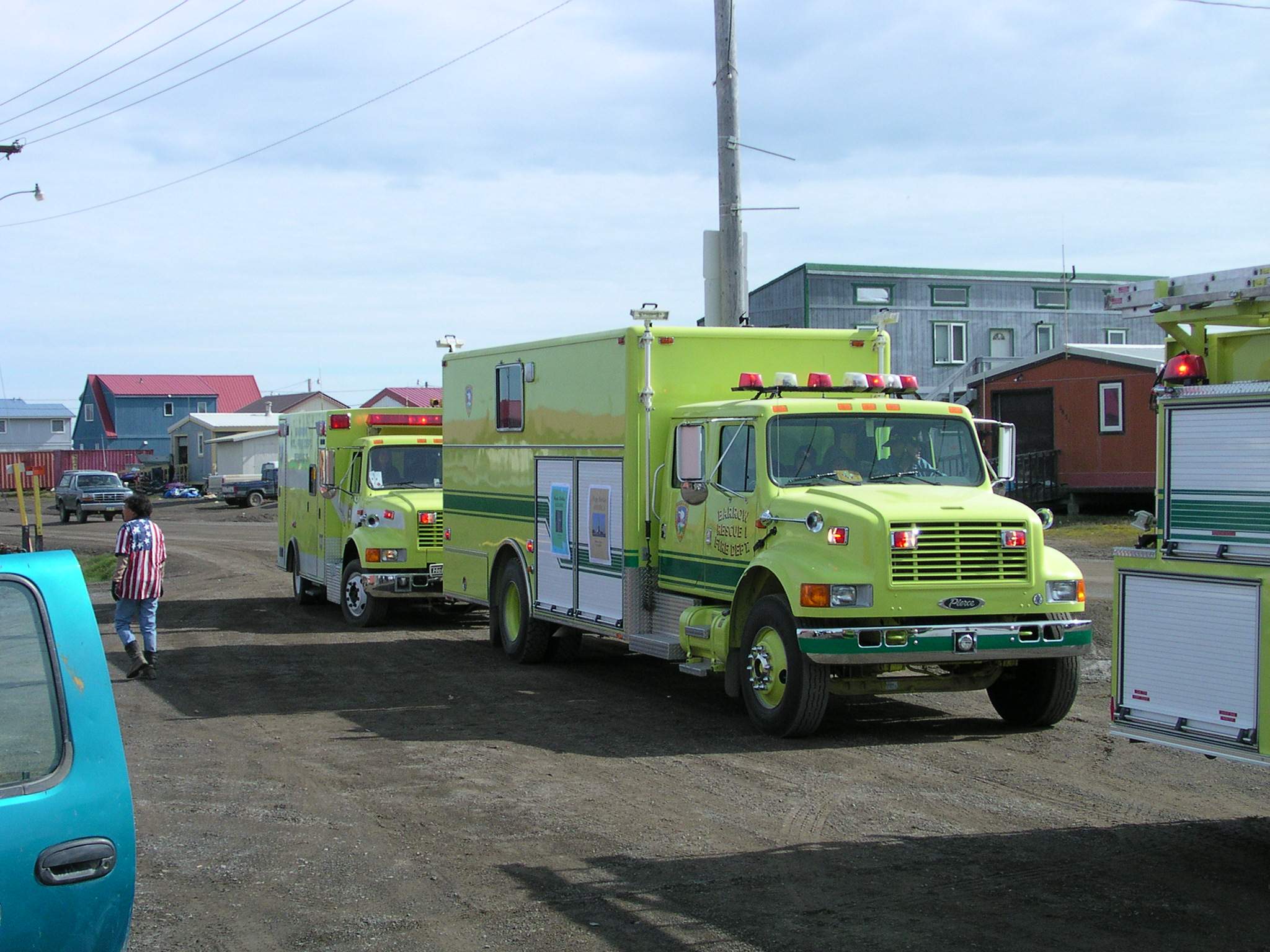 Fire trucks line up for a parade to celebrate the 4th of July in Barrow, Alaska.