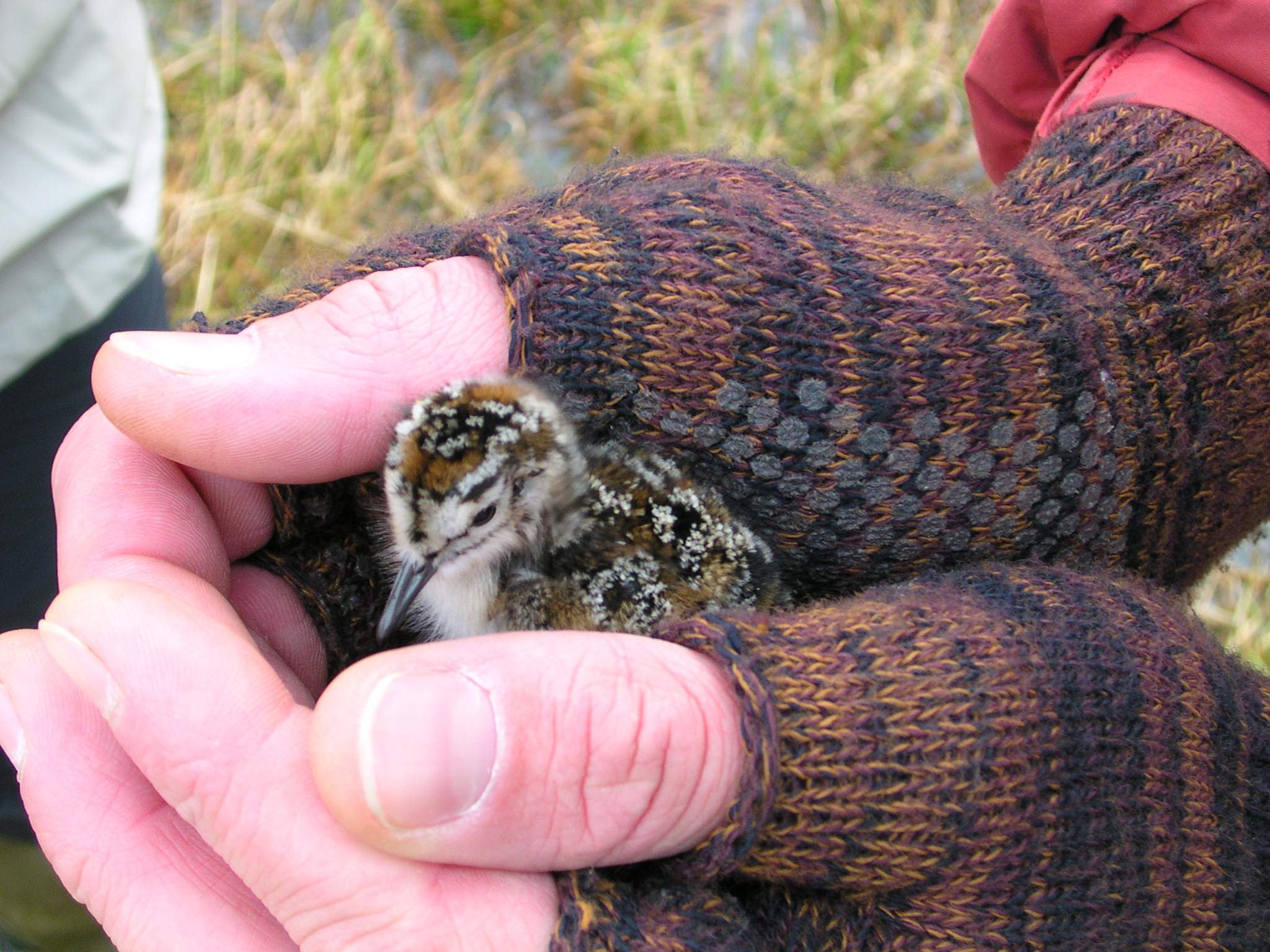 TREC teacher Misty Nikula-Olsen holds a semipalmated sandpiper (*Calidris pusilla*) chick near Barrow, Alaska.
