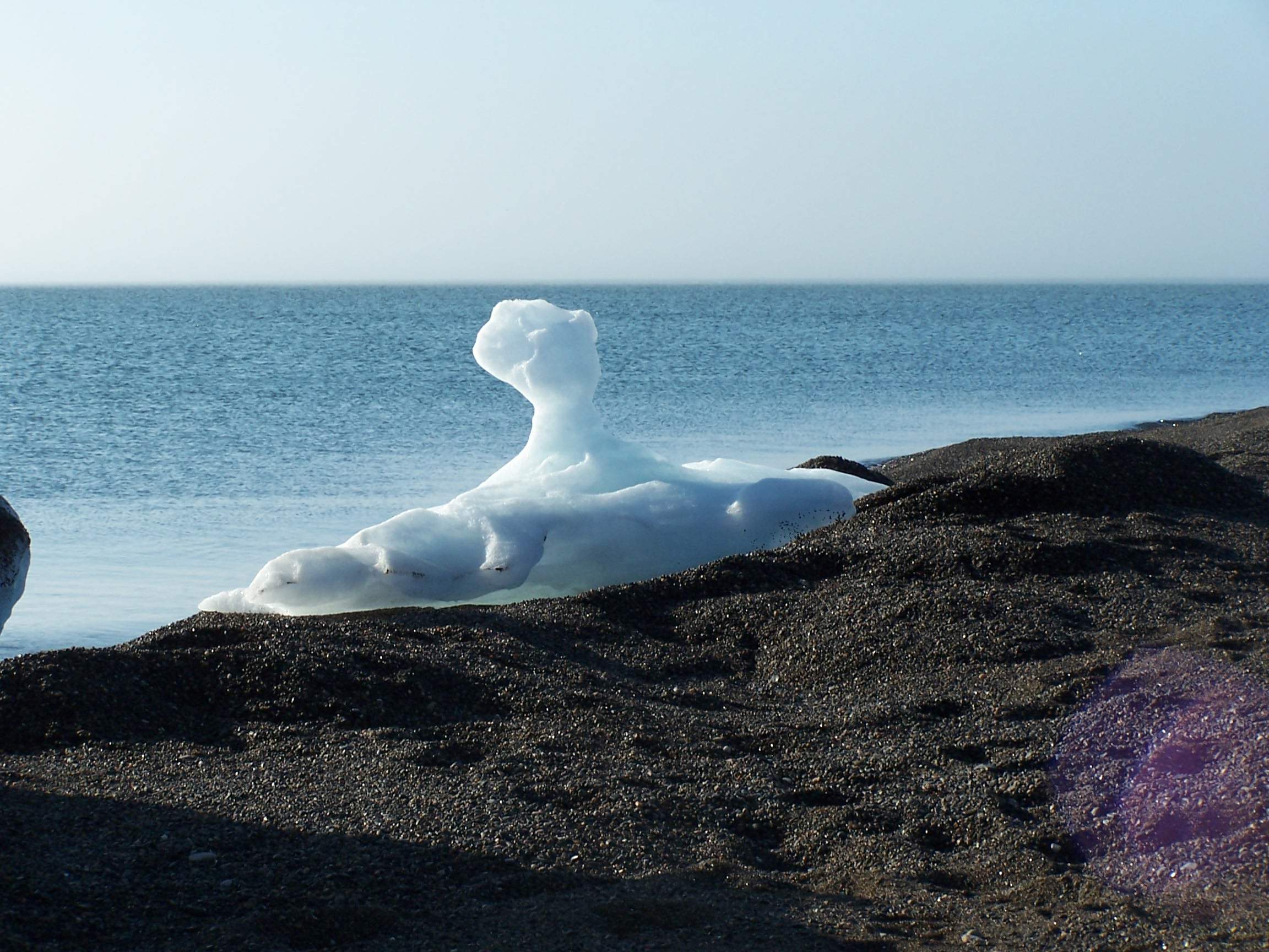 A interesting piece of ice rests on the beach near Barrow, Alaska.
