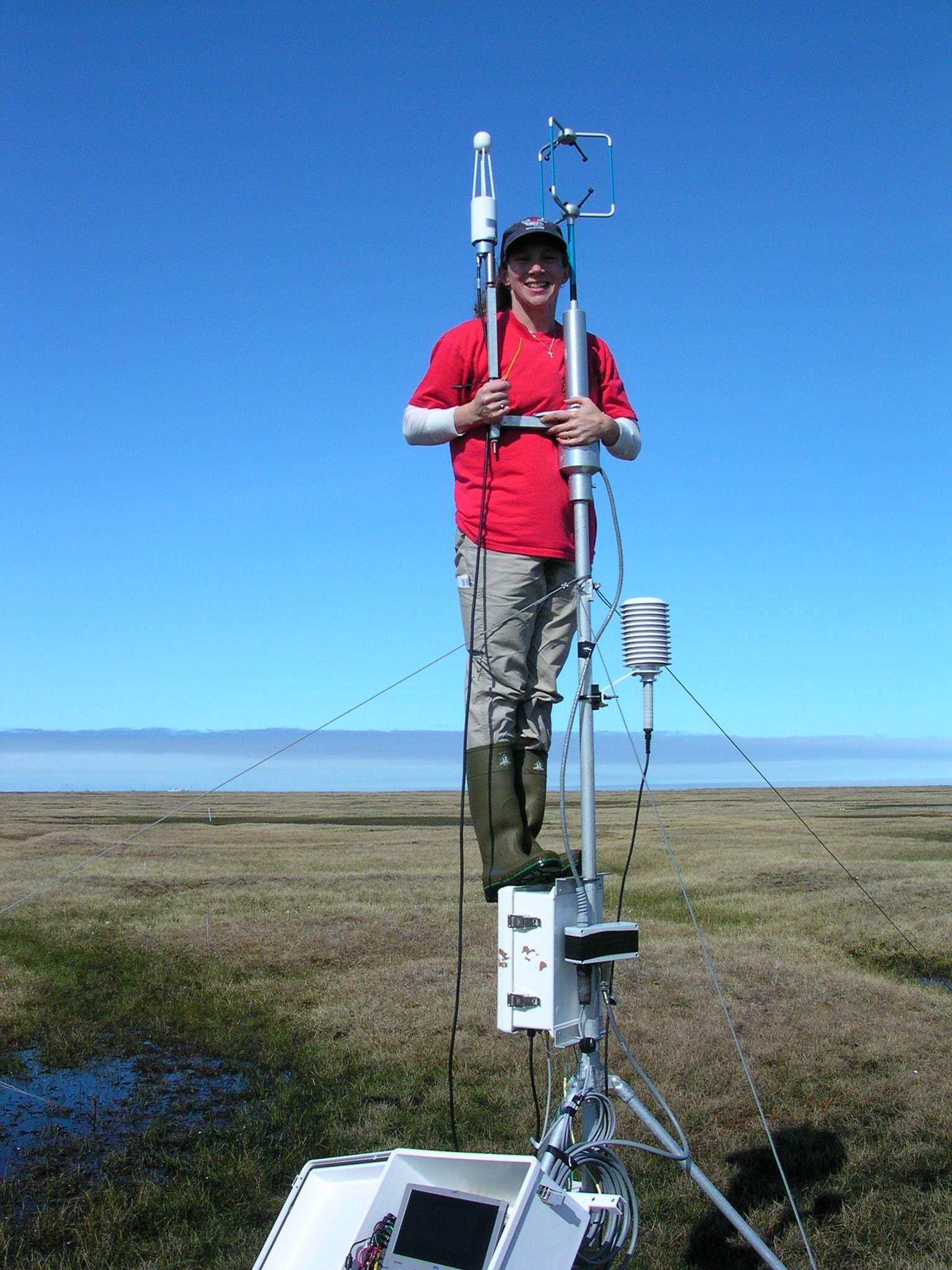 TREC teacher Misty Nikula-Ohlsen replacing the Infrared Gas Analyser (IRGA) near Barrow, Alaska.