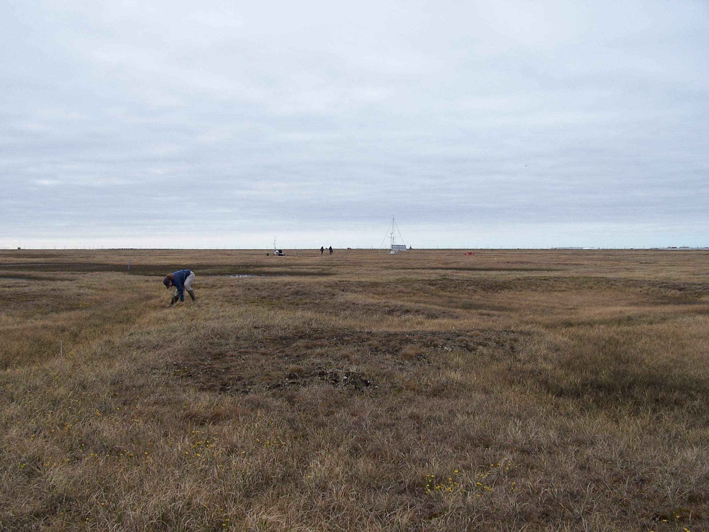 TREC teacher Misty Nikula-Ohlsen probes the soil and takes measurements at the Barrow Environmental Observatory.