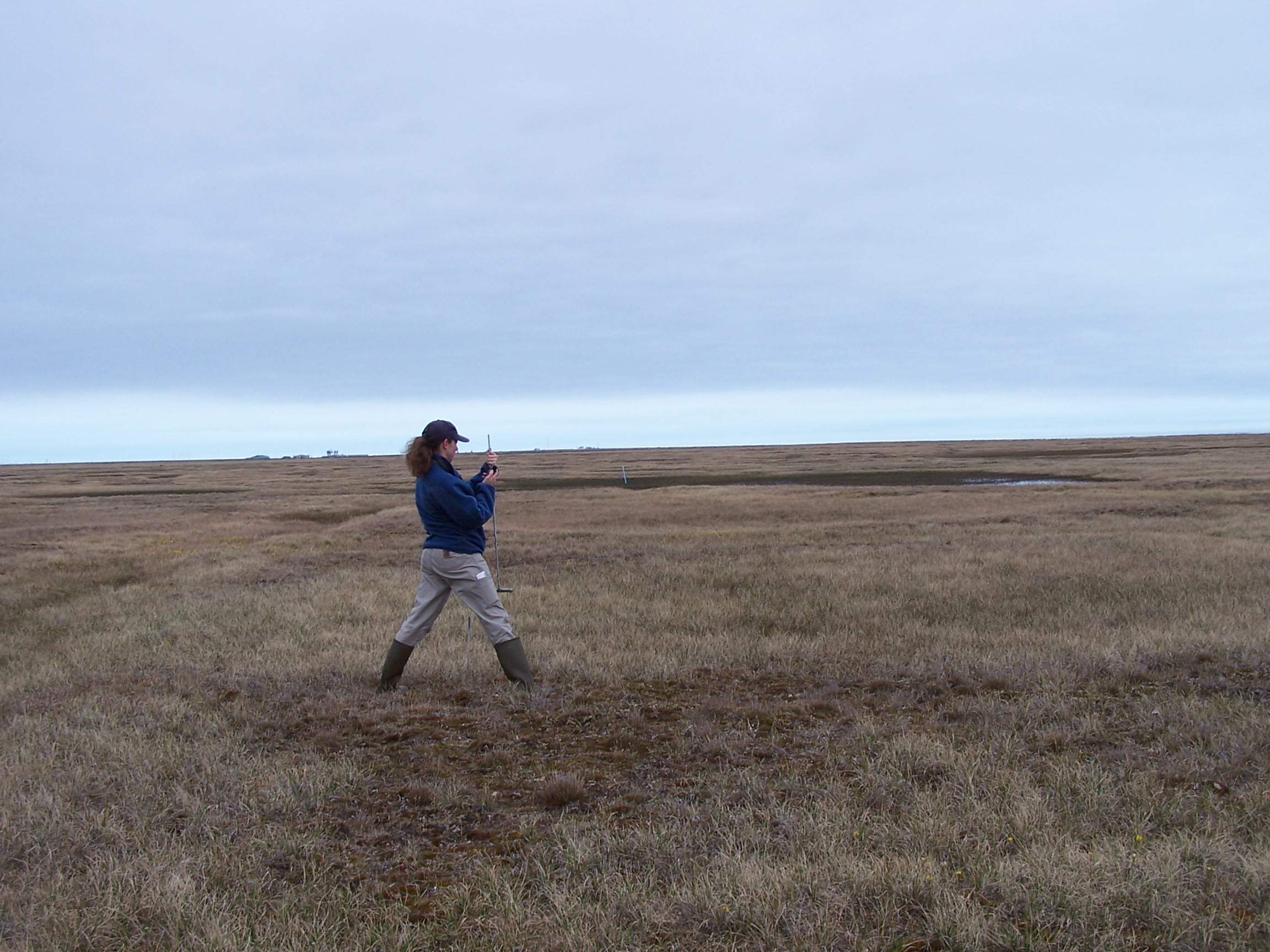 TREC teacher Misty Nikula-Ohlsen probes the soil and takes measurements at the Barrow Environmental Observatory.