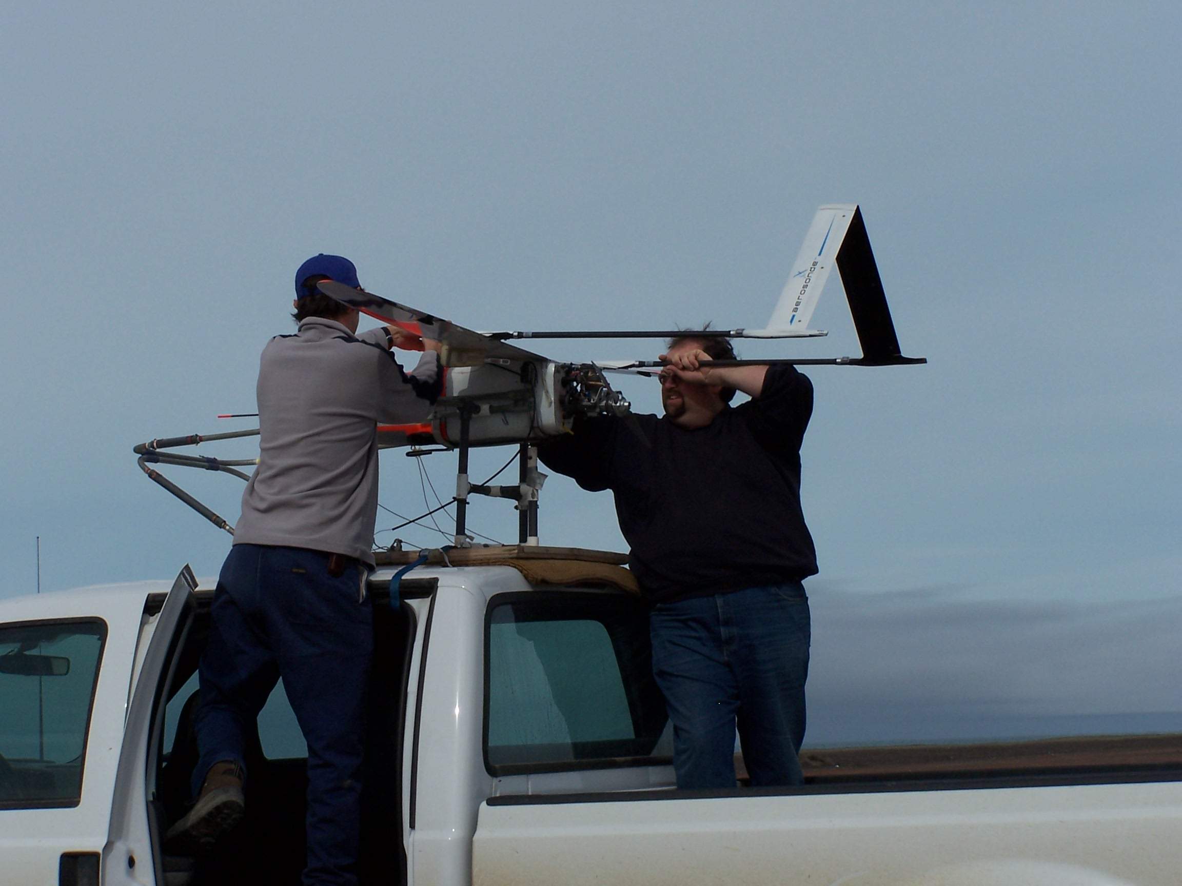 Preparing to launch the Aerosonde robotic aircraft.