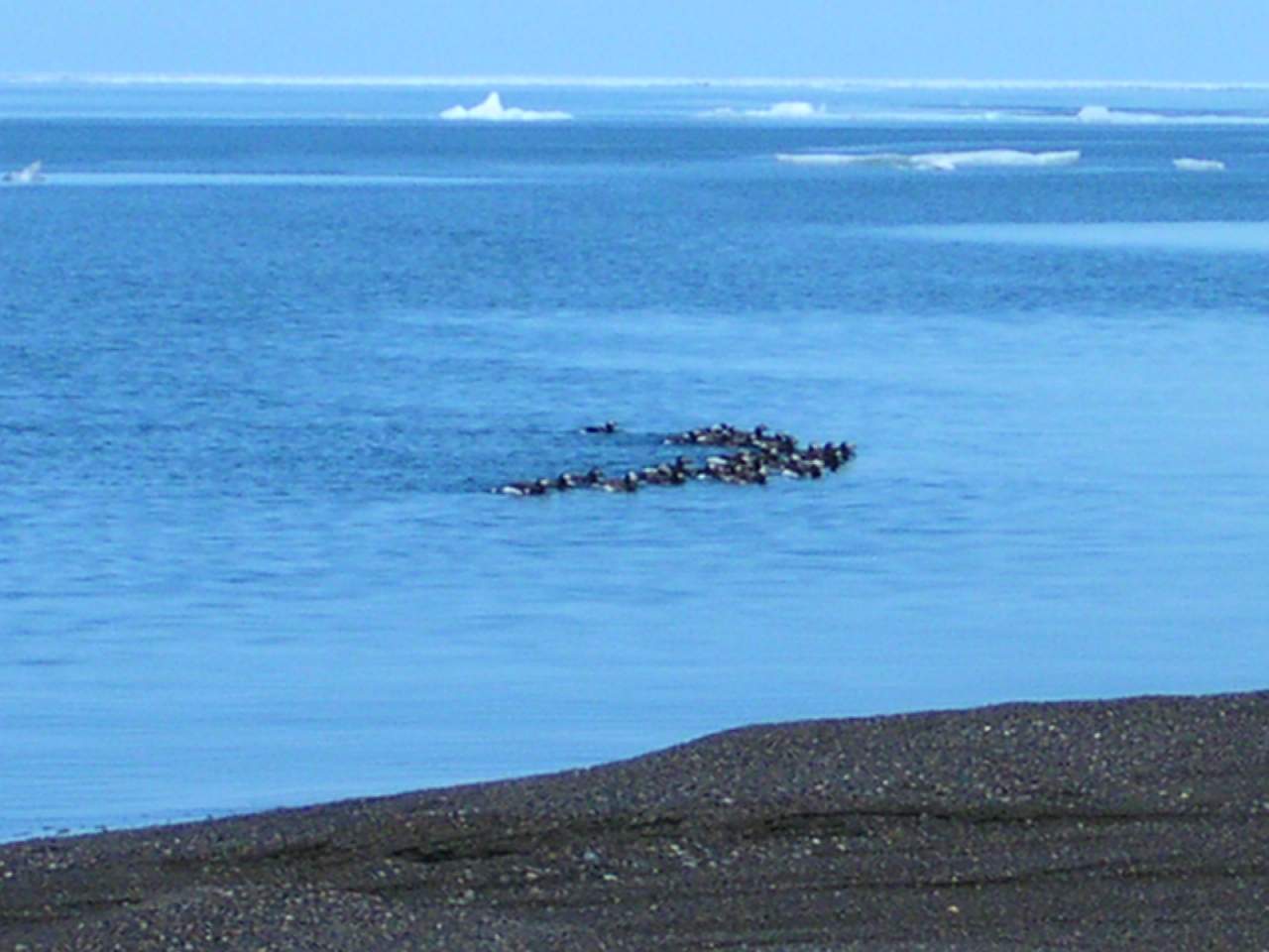 A flock of phalaropes seen near Barrow, Alaska.