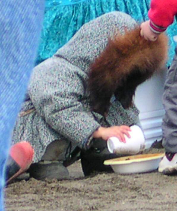 An Inupiaq girl at the Nalukataq, the annual outdoor festival, where each whaling crew that caught a whale the past spring serves a “banquet” of Native food to everyone who comes. Barrow, Alaska.