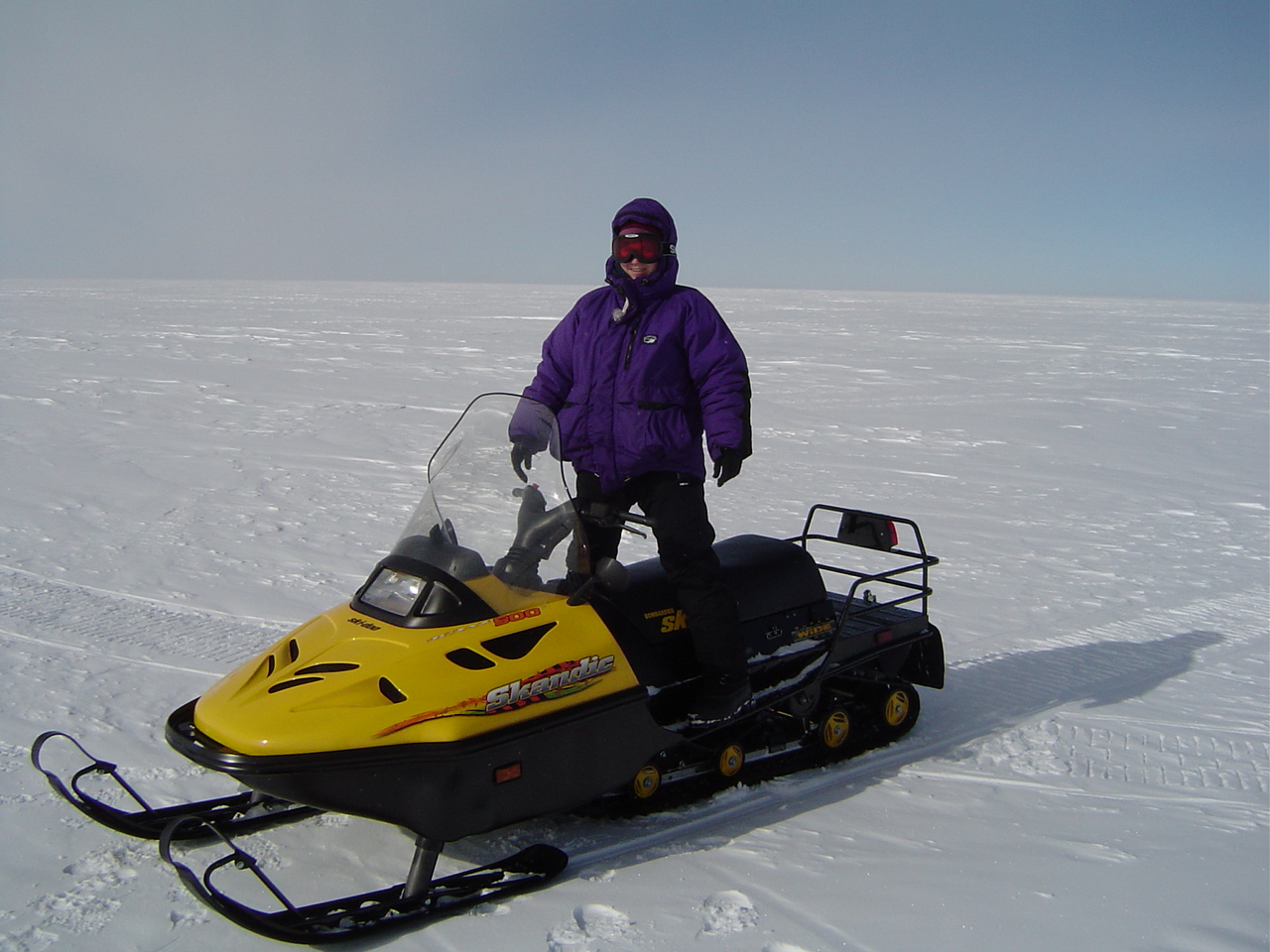 TREC teacher Nikkia Airaudi drives a snowmaching at Summit, Greenland.