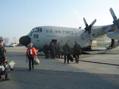 Loading up on a Herc C-130 for the trip to Summit, Greenland.